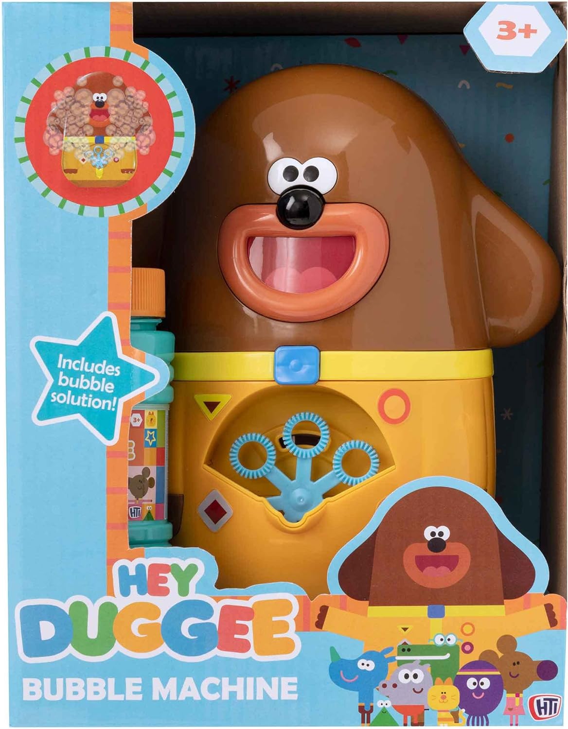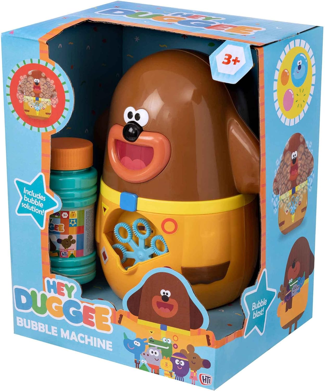 Hey Duggee Máquina de bolhas | Máquina de fazer bolhas | Ei, Duggee Bubble Party Bubble Machine e solução de bolha bônus | Brinquedos divertidos perfeitos para atividades ao ar livre e brinquedos para ambientes internos | Ei Duggee e os esquilos
