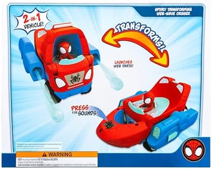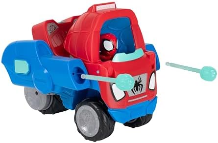 Homem-Aranha e Seus Incríveis Amigos - Veículo Transformável Onda de Teia do Homem-Aranha - Veículo 2 em 1 de 23 cm com Rodas Livres e Lançadores de Dardos de Teia