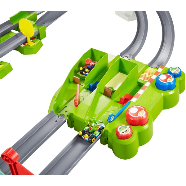 Com a derradeira pista de corrida de Mario Kart, inspirada nas lendárias pistas do popular videogame, Hot Wheels traz a ação rápida de Mario Kart para o mundo real. As crianças podem correr como Mario e Yoshi, superar obstáculos e viver aventuras, mas desta vez na pista Hot Wheels!