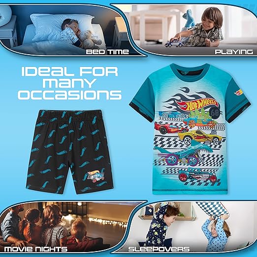 - Ofereça ao seu pequeno piloto um conforto elegante com este incrível conjunto de pijamas infantis Hot Wheels em uma variedade de designs incríveis para você escolher. Perfeito para dormir, relaxar ou brincar, estes pijamas macios e respiráveis são feitos para oferecer conforto