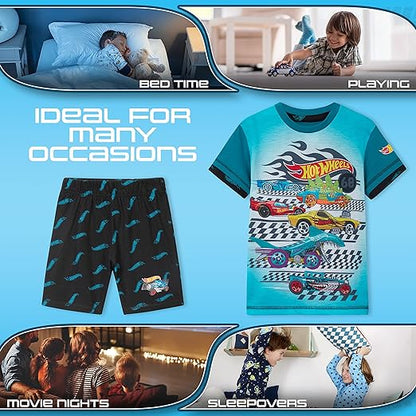 Hot Wheels Pijama infantil para meninos, 2 peças, roupa de dormir de verão, pijama curto para meninos, roupa de salão respirável, idade 3-8, mercadoria oficial, presentes para meninos