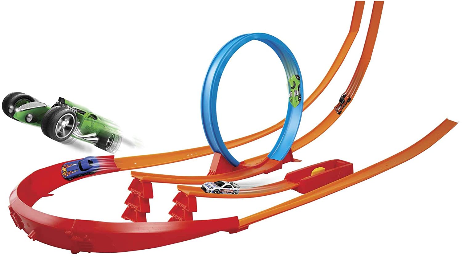 Use peças de trilha, conectores, curvas, saltos, lançadores e uma pinça de corrida de gravidade lado a lado para criar diferentes desafios e obstáculos; Existem inúmeras variações e infinitas maneiras de jogar