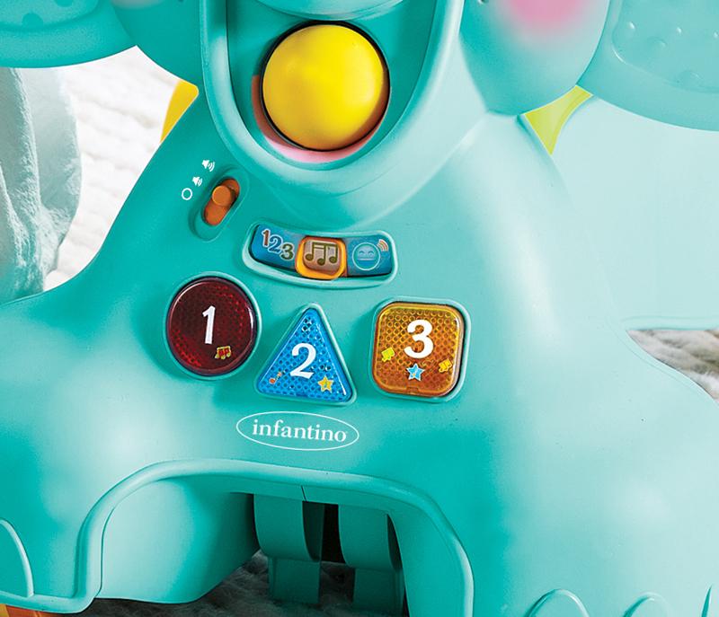 Existem 3 maneiras de brincar com este elefante fofo 3 em 1! Pode ser usado para sentar, andar e montar, proporcionando uma grande diversão que cresce com o seu bebê.