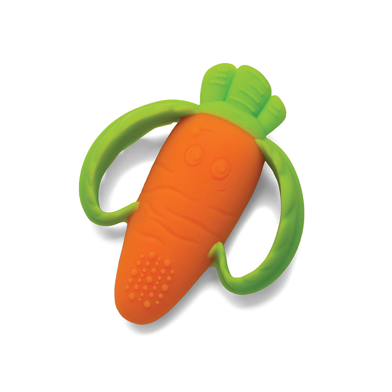 Este divertido mordedor de cenoura é perfeito para acalmar as gengivas sensíveis e proporcionar alívio da dentição.