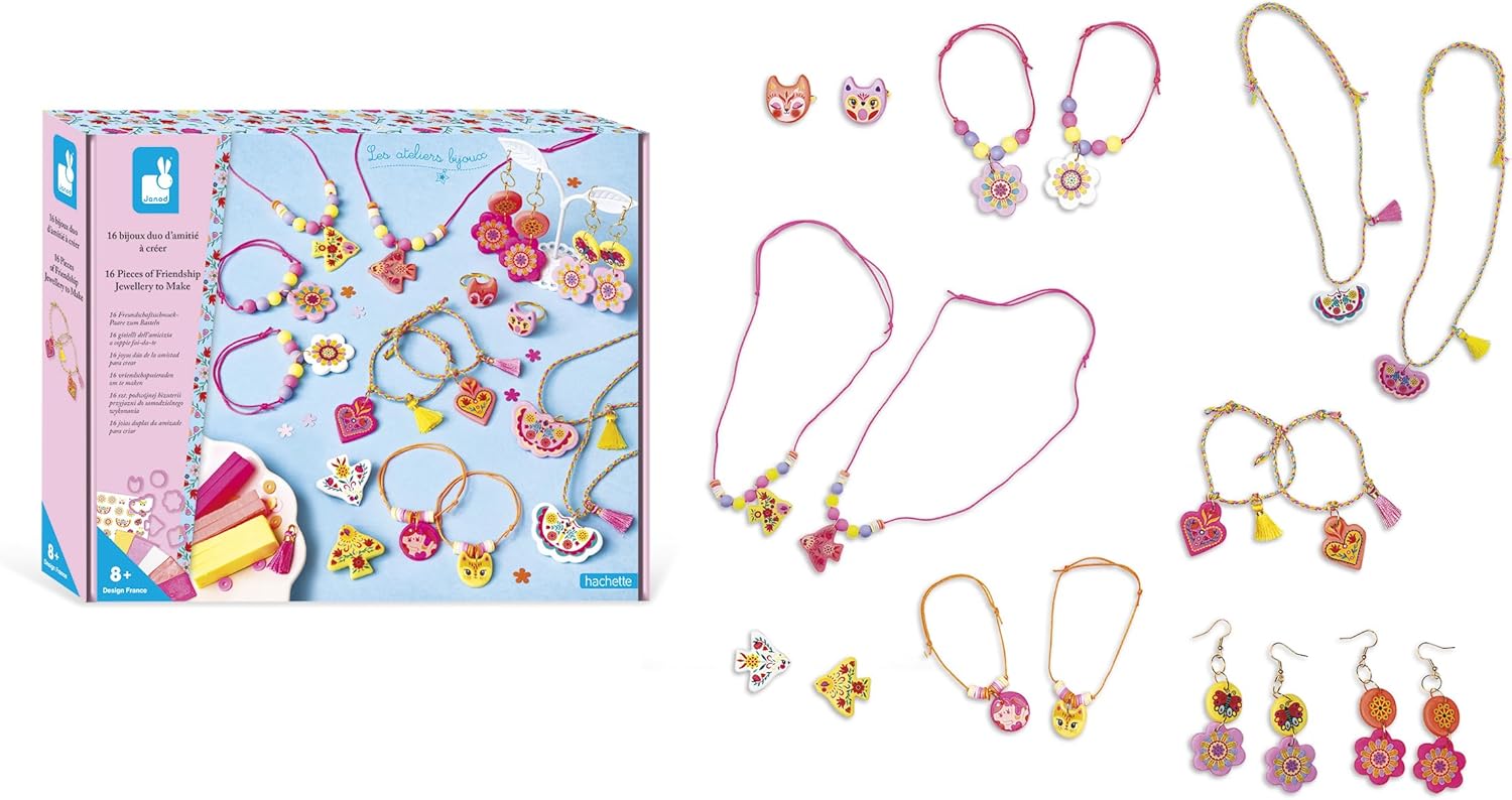 Janod - 16 Joias da Amizade para Criar - Amuletos de Argila Polímera Autocriáveis - Kit de Lazer Criativo - Estimula a Criatividade - Atividade Manual Infantil - A partir de 7 anos - J09186