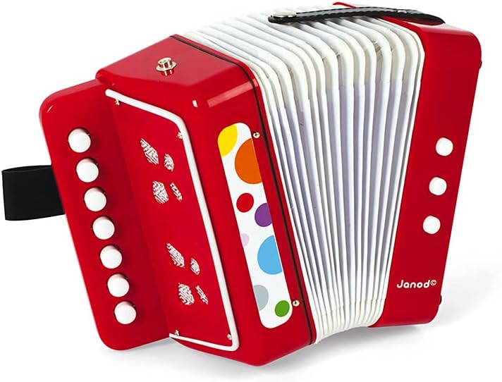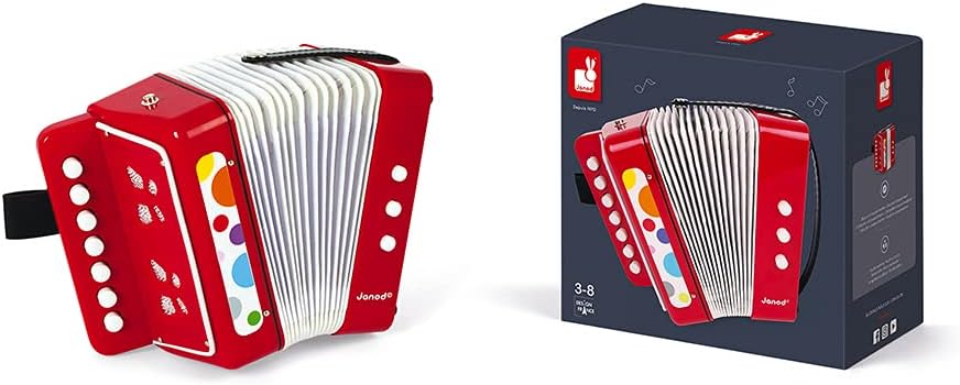 - BEM-VINDO AO CAFÉ AO AR LIVRE: este acordeão fará as delícias dos pequenos músicos iniciantes: com seu instrumento de estilo pop e cores vermelhas brilhantes, seu filho se imaginará como um virtuoso e será capaz de inventar suas próprias melodias e músicas