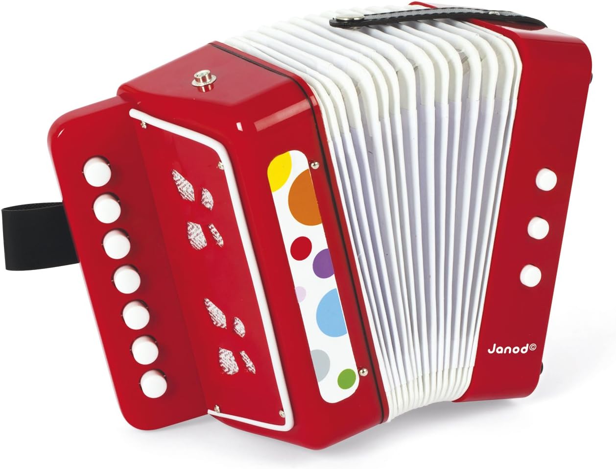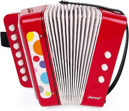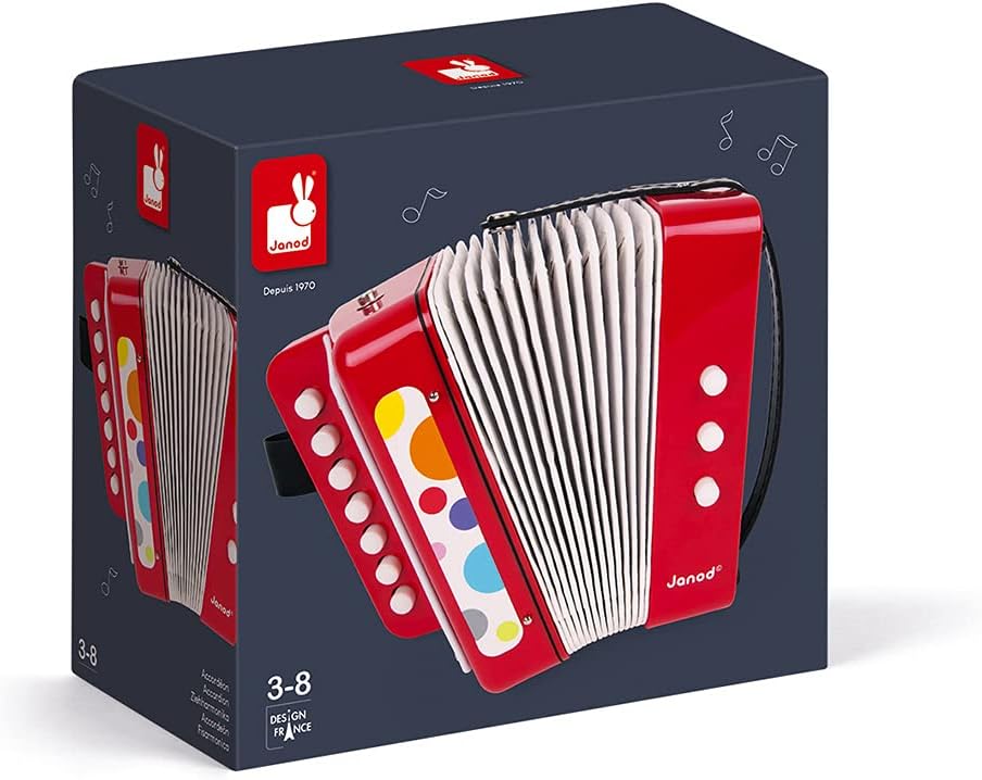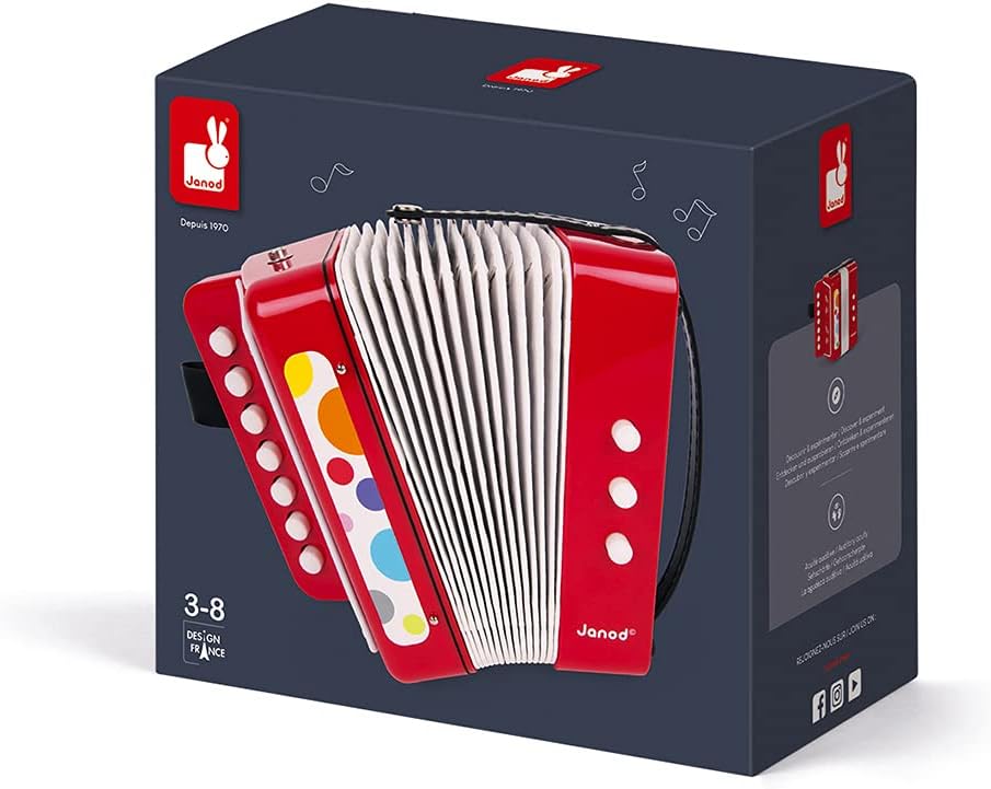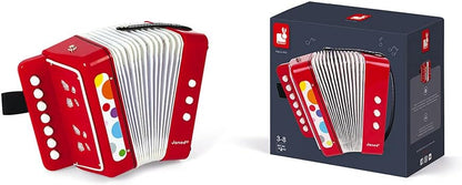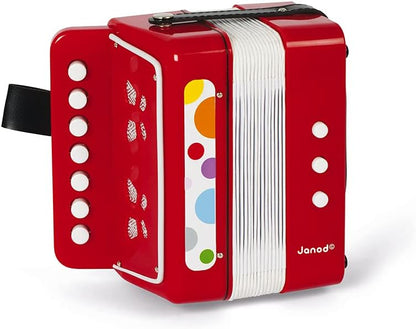 Janod Acordeão de Confete - Brincadeira de Fingir e Brinquedo de Despertar Musical - Alça de Segurar - Vermelho - a partir de 3 Anos, J07620