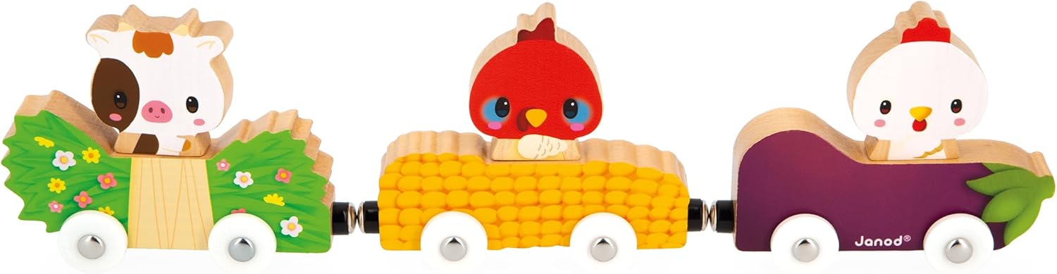 - CARACTERÍSTICAS: Contém 3 carros de madeira e seus condutores de animais - Dimensões: 24 x 5 x 14 cm - Brinquedo de madeira FSC - Este jogo Janod é adequado para crianças de 18 meses a 4 anos - O jogo de aprendizagem precoce ideal para aprender sobre animais de fazenda e desenvolver através da brincadeira.