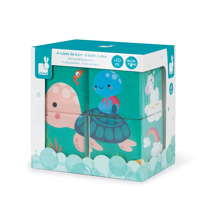 Com estes 4 cubos de banho ilustrados, seu filho terá horas de diversão no banho!