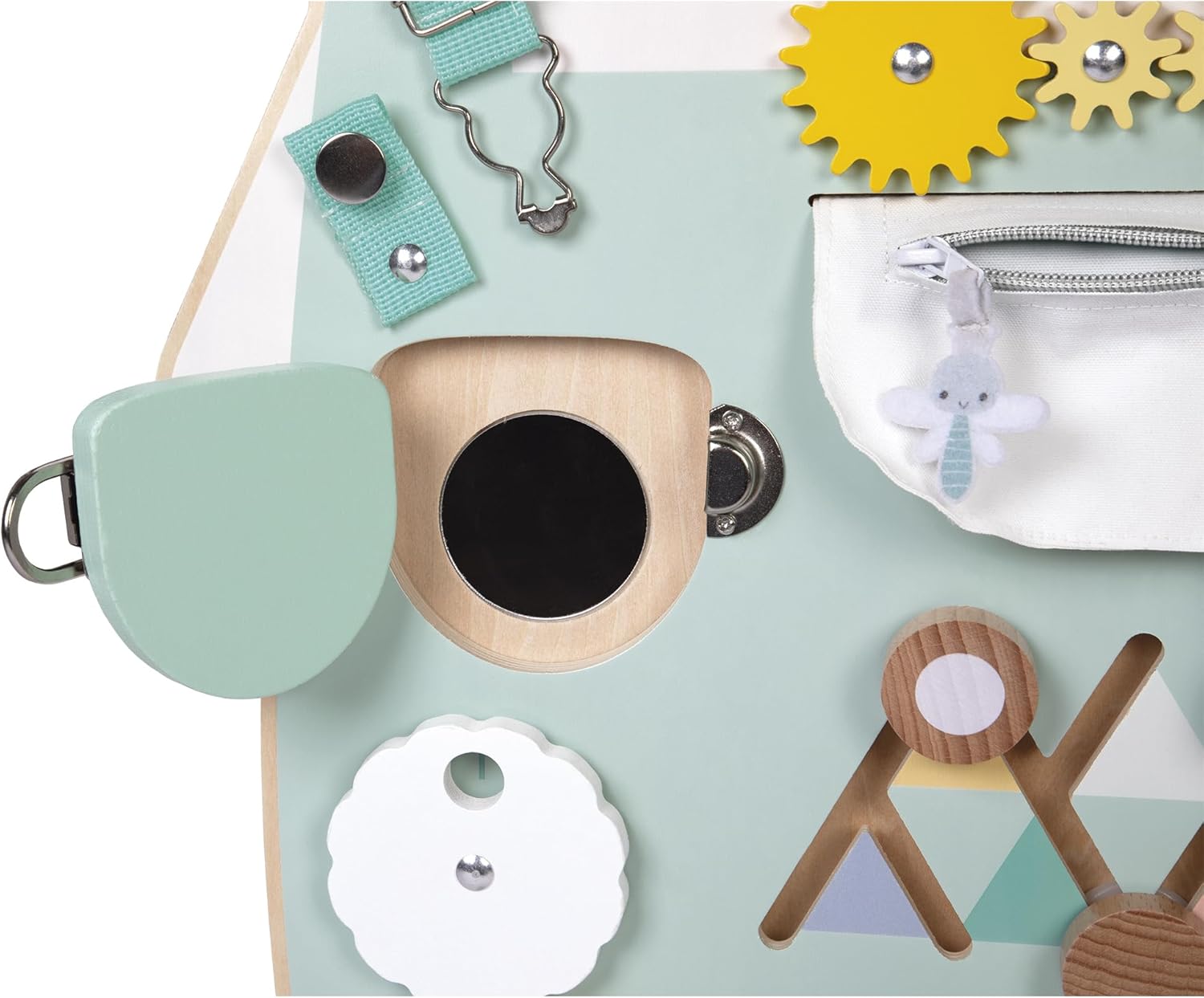Janod - Busy Board Ourson - 20 atividades - Grande quadro de atividades de madeira - Ideal para desenvolvimento motor fino, curiosidade e destreza - Altura 60 cm - A partir de 18 meses, J05162