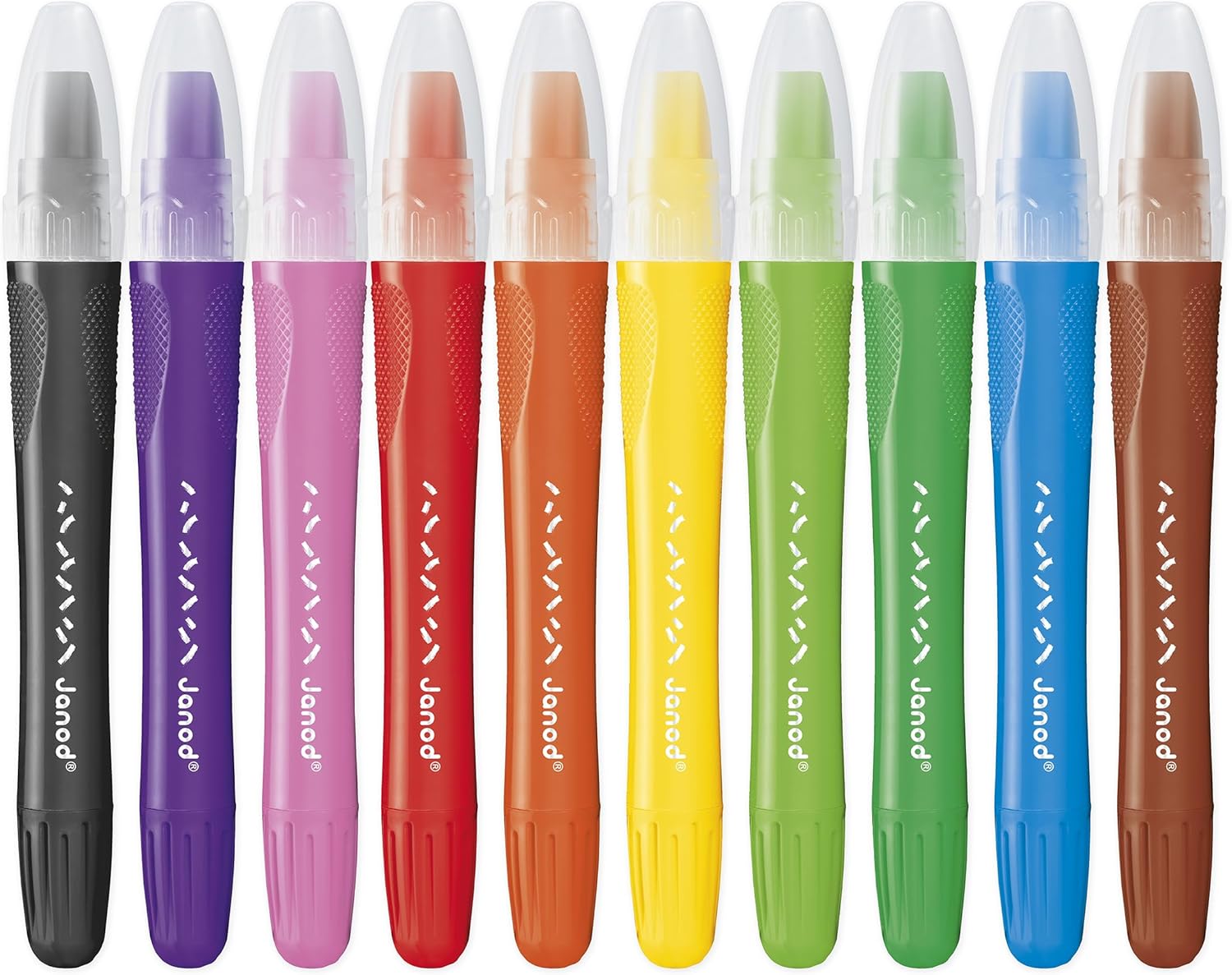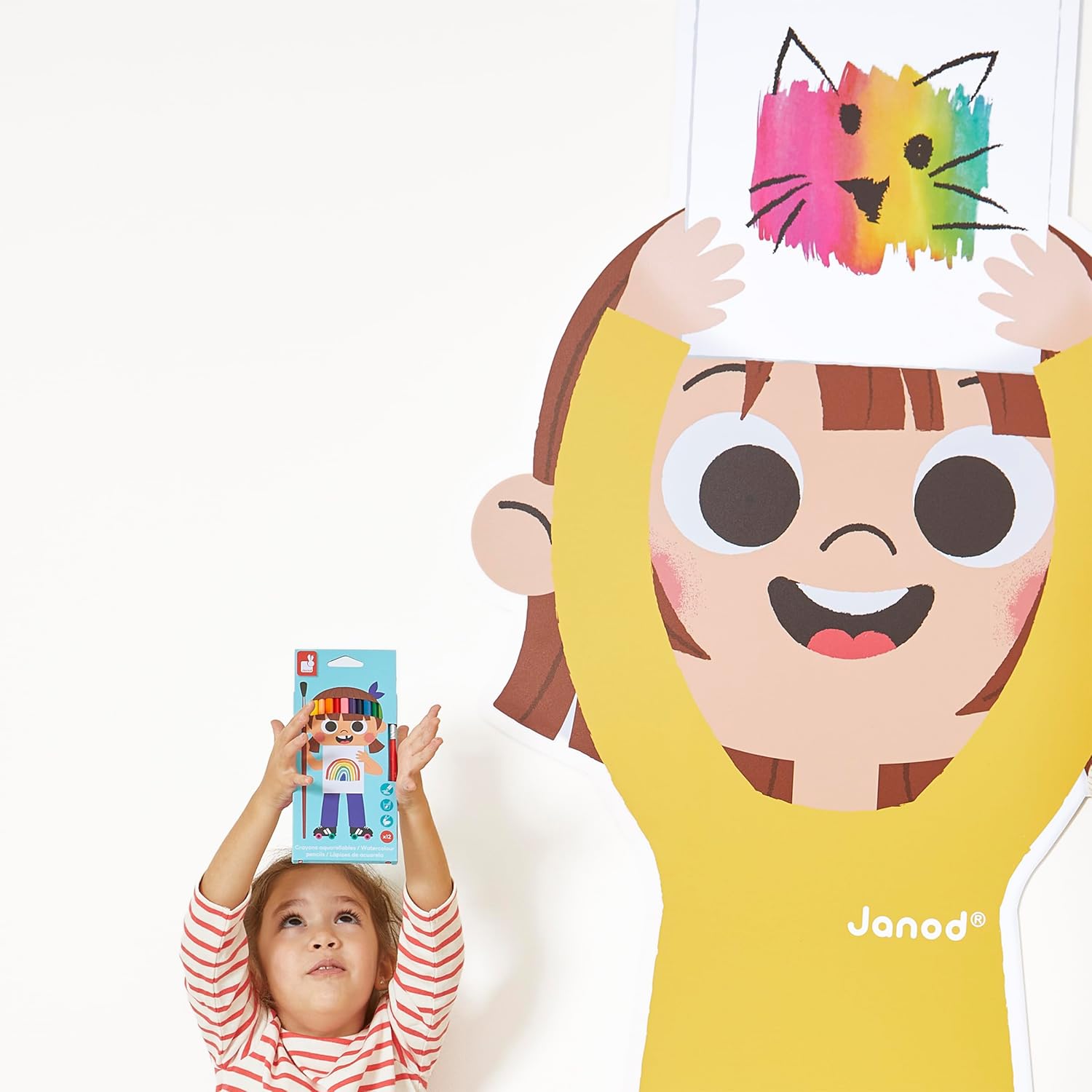 Janod - Conjunto de 10 lápis de gel aquarela - Sistema de torção para manter as mãos limpas - Giz aquarela - Brilhante, Janod - Conjunto de 12 lápis de aquarela + 1 pincel incluído - Mina macia e resistente - Desenhe