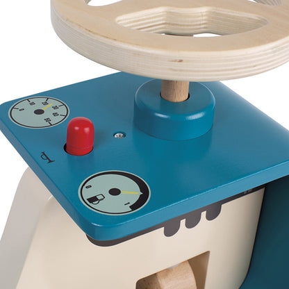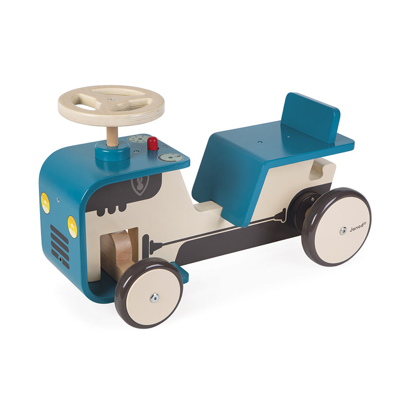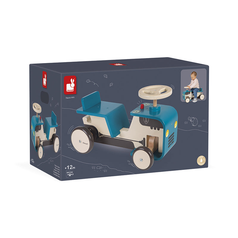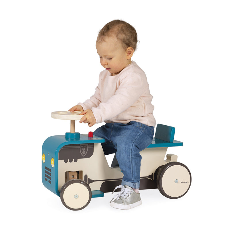 Este trator de madeira, com seu esquema de cores azul/verde e formas arredondadas, foi projetado para ajudar crianças de 12 meses ou mais a desenvolver suas habilidades motoras à medida que o empurram. Também os ajudará a aprender a controlar seus movimentos enquanto exploram o mundo ao seu redor. Tem uma buzina embutida para sinalizar qualquer perigo e avisar as pessoas quando o bebê chegar na fazenda!