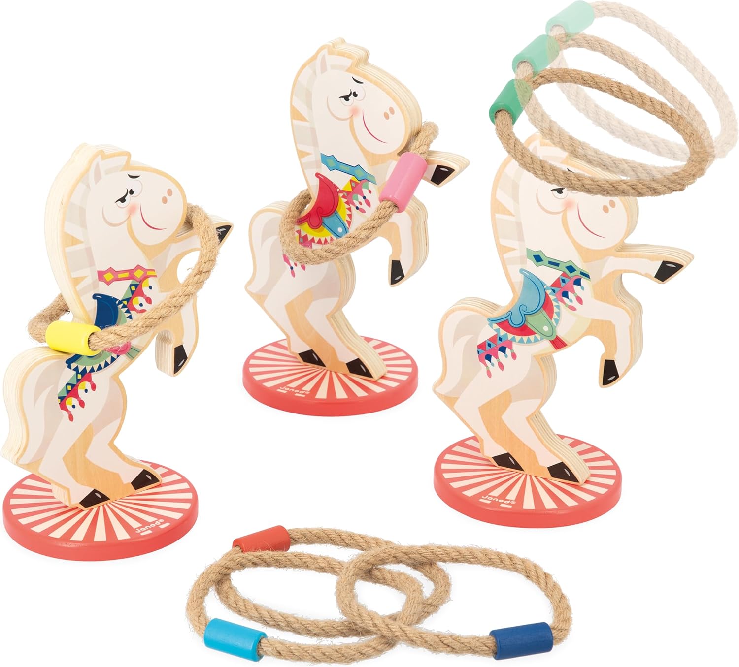 Janod - Jogo de arremesso de anel de cavalo Applepop - Jogo de habilidade infantil - 3 cavalos + 6 anéis - Desenvolve destreza - Brinquedo de madeira FSC - 3 anos +