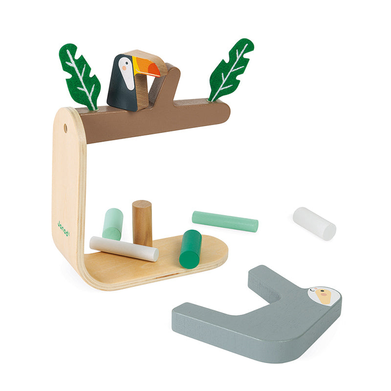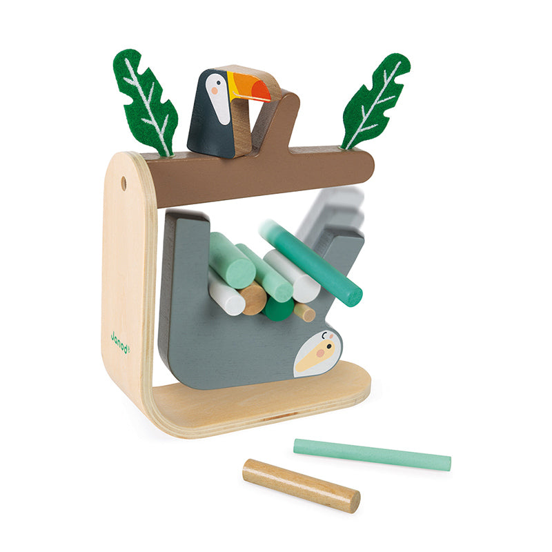 Levante-se e brilhe com este atraente jogo de habilidade em madeira para crianças a partir de 3 anos! Este jogo de equilíbrio apresenta uma preguiça pendurada em seu galho e 15 varas. Pode ser jogado por um ou mais jogadores. O objetivo do jogo? Coloque o máximo de gravetos que puder na barriga da preguiça antes que ela solte o galho! O jogador que coloca um bastão a mais é o perdedor! Cada folha neste lindo jogo é feita de feltro macio.