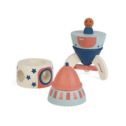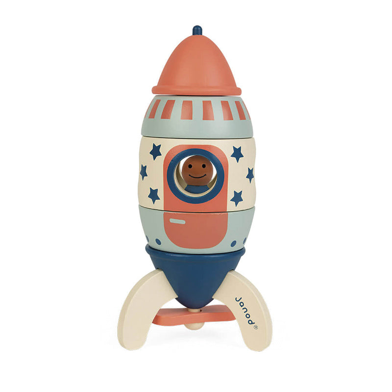 Um foguete especial que é fruto de uma colaboração entre a marca Janod e sua comunidade! O icônico foguete foi remodelado por seus fãs e temos o orgulho de apresentar a criação vencedora: "Lucky Star". Fabricado em madeira de cerejeira chinesa.