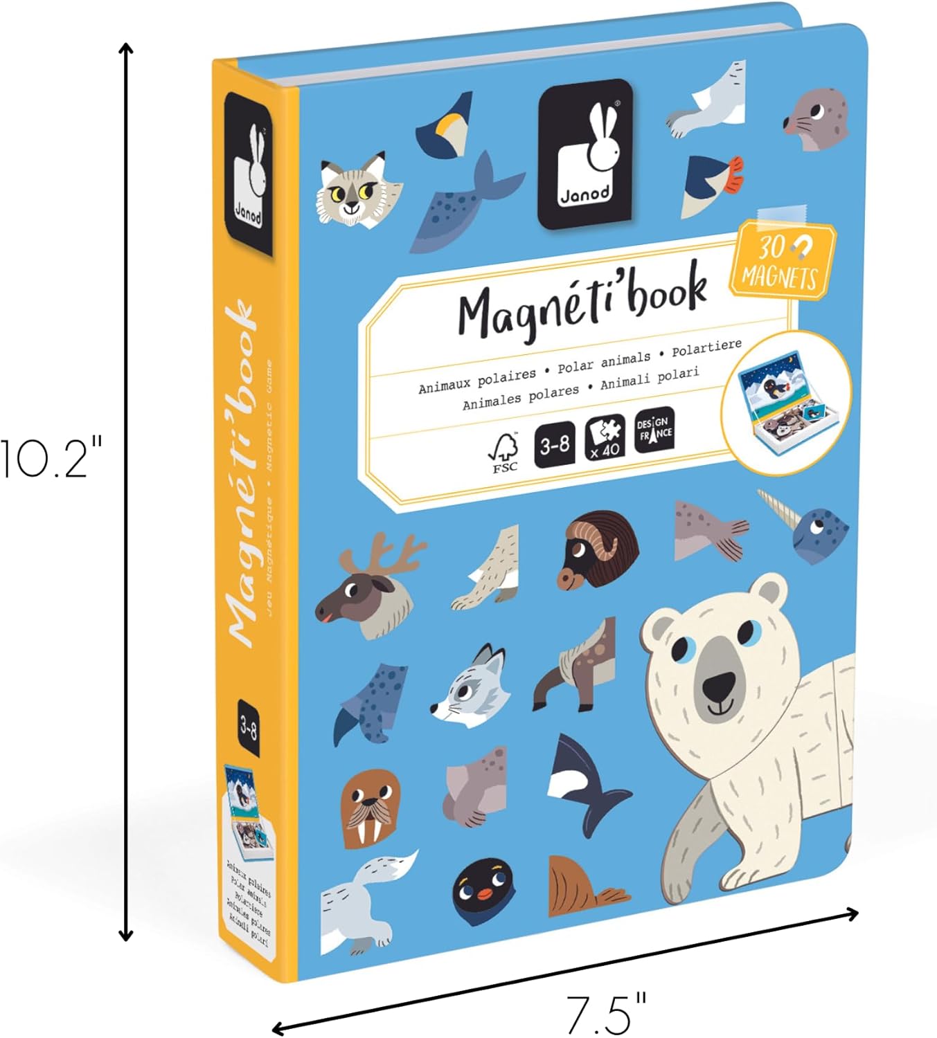 Janod - Magnéti'Book Arctic Animals - Jogo educativo de 30 ímãs com 10 cartas modelo - Brinquedo infantil de papelão FSC - Desenvolve habilidades motoras finas e imaginação - 3 anos +