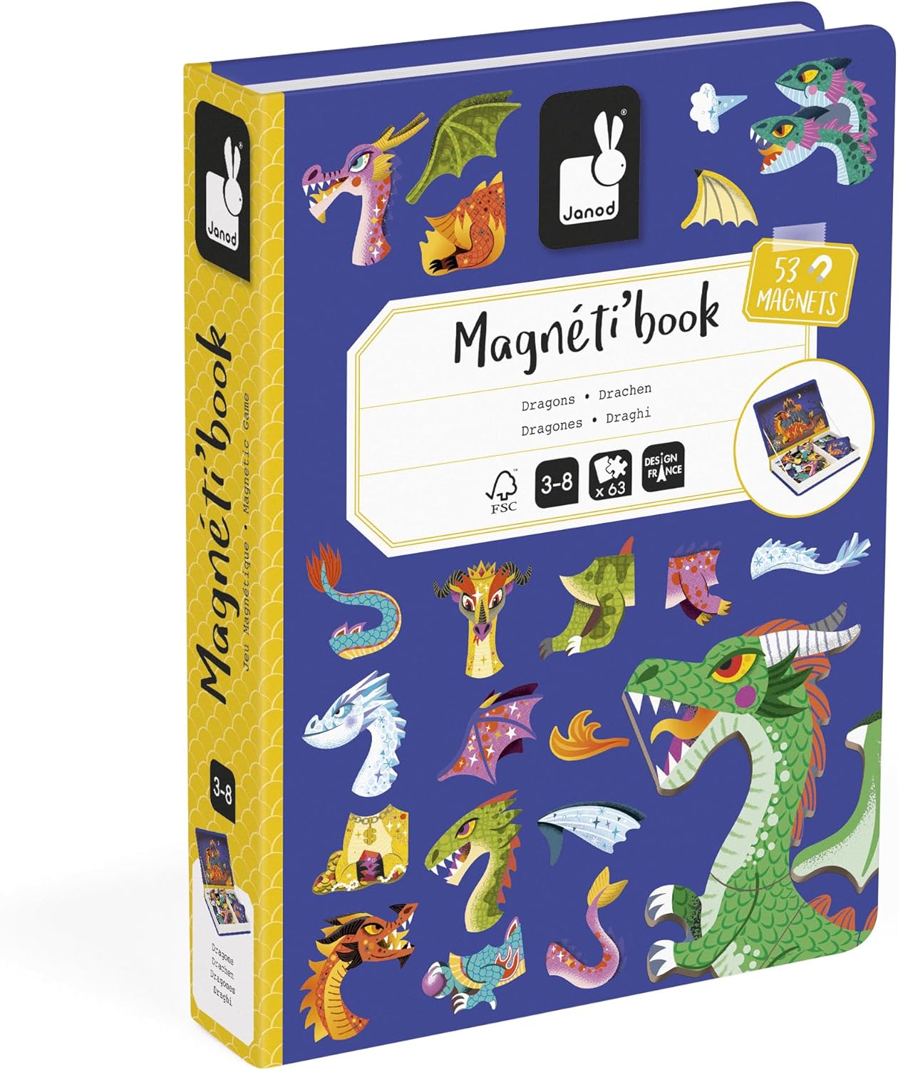 Janod - Magnéti'Book Dragões - Jogo Magnético Educativo 53 Ímãs + 10 Modelos - Brinquedo Infantil de Papelão FSC - Desenvolve Destreza e Imaginação - A partir de 3 Anos - J02527
