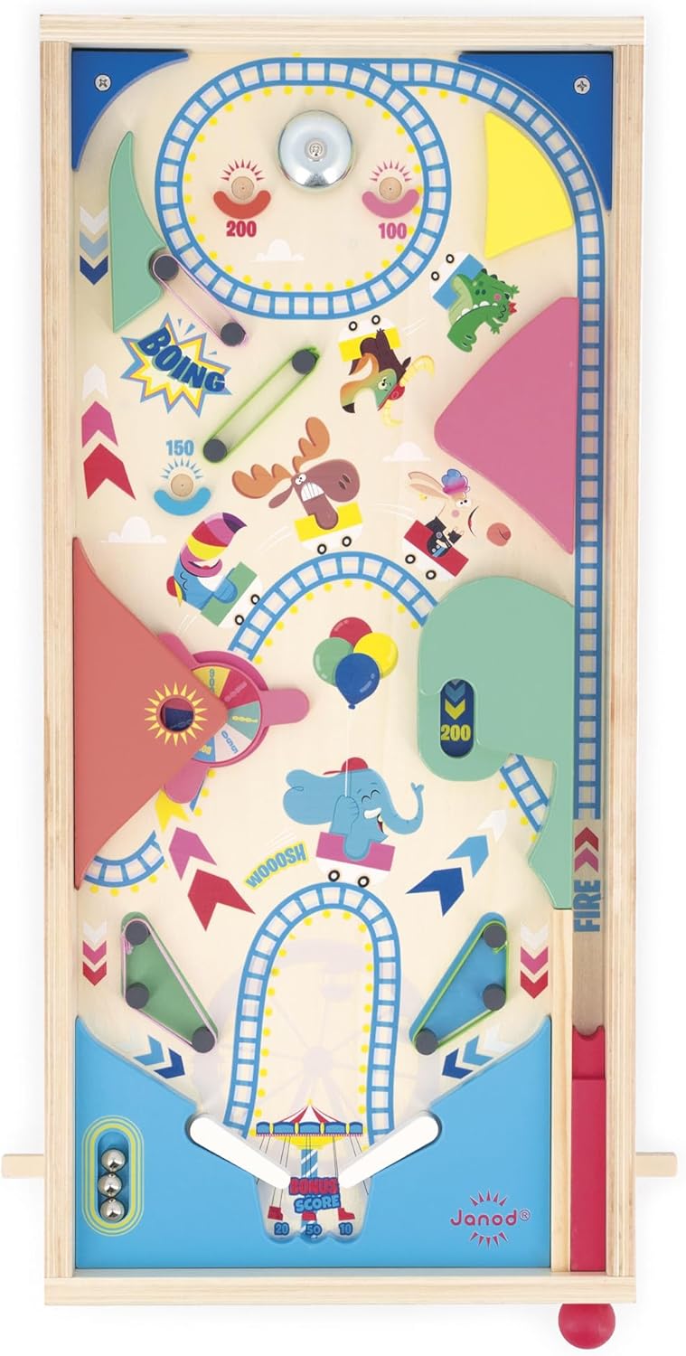 - FLIPPER DE MADEIRA: Pronto para desafiar a gravidade? Esta máquina de pinball de madeira colorida, fornecida com 3 bolas de metal, é perfeita para crianças a partir de 5 anos! Mire, atire, marque pontos e divirta-se por horas!