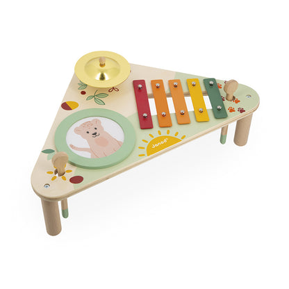 Esta adorável mesa de aprendizagem precoce proporcionará ao seu filho uma primeira introdução às alegrias musicais. Ele combina vários sons em uma única mesa compacta e fácil de usar com 3 áreas musicais: uma bateria, um prato, um xilofone de metal e duas baquetas. Permitindo a rédea solta da imaginação e criatividade dos pequenos para revelar seu músico iniciante.