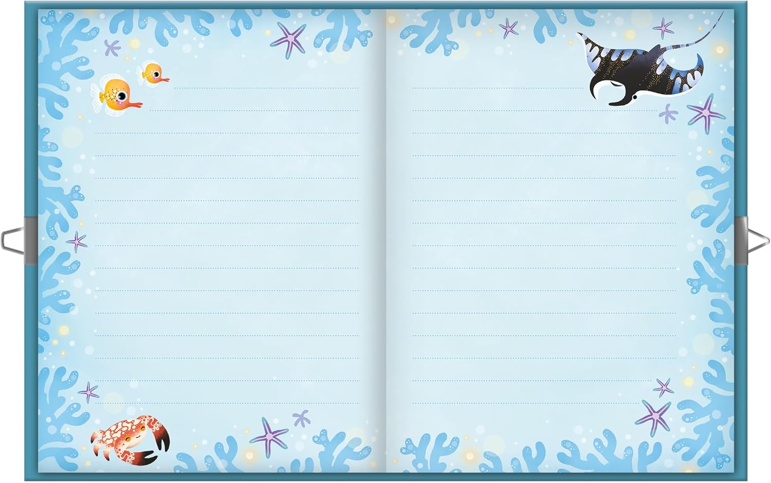 - ENTRE NO UNIVERSO MAGIC OCEAN: Este caderno secreto é um kit de artes e ofícios da linha Magic Ocean. Esta versátil linha Janod inclui joias, decorações, adereços de fantasia e atividades gráficas, tudo centrado em um design inspirado no universo da pequena sereia. Esta atividade artesanal infantil foi desenhada pela ilustradora Marie-Rose Boisson.