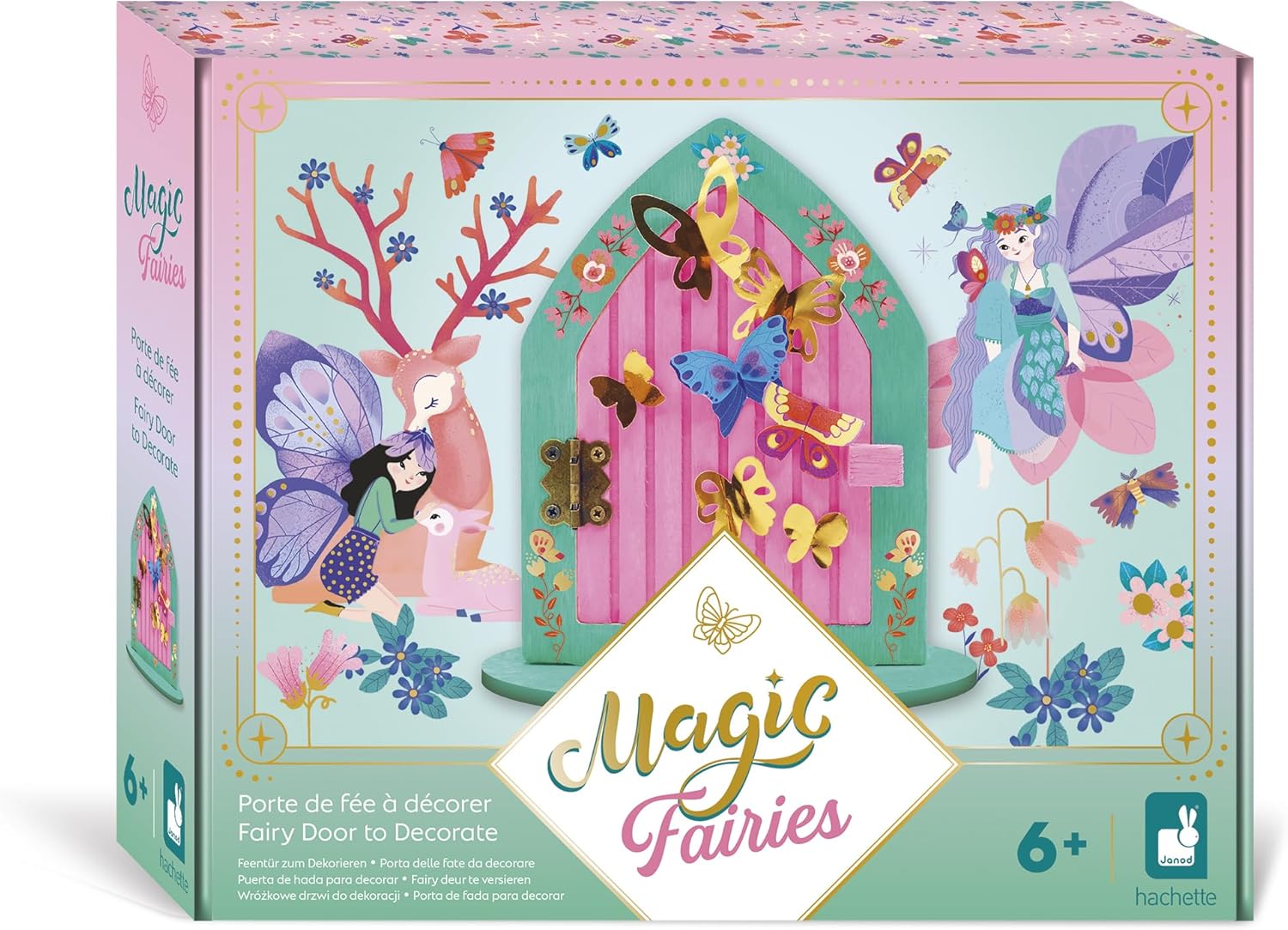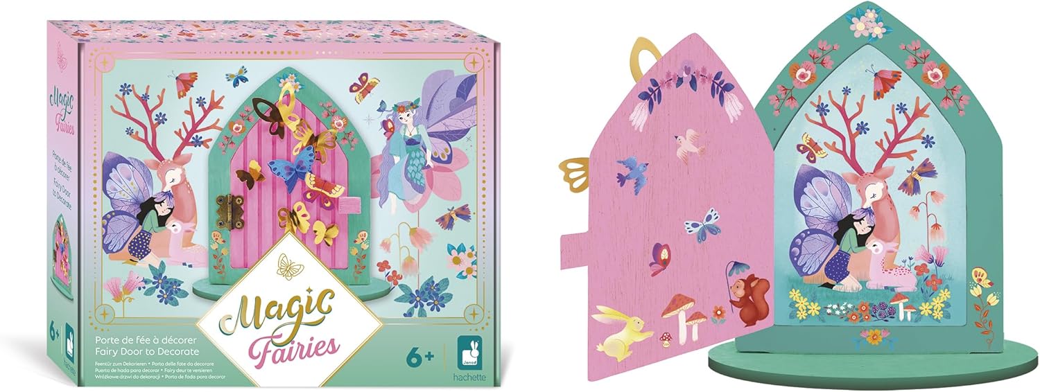 Janod - Porta de Madeira para Decorar Tema Fada - Para Pintar e Decorar - Les Atelier du Calme - Kit Lazer Criativo Infantil - Desenvolvimento Criatividade e Concentração - A partir de 6 Anos - J09169
