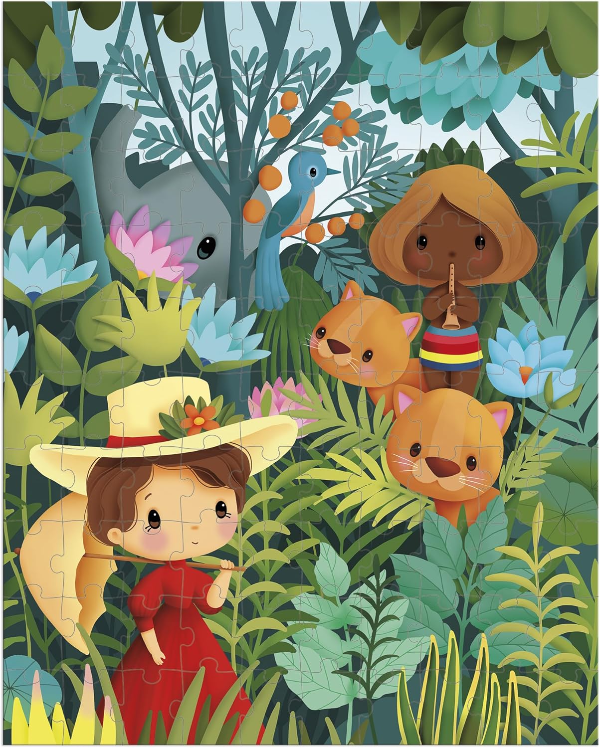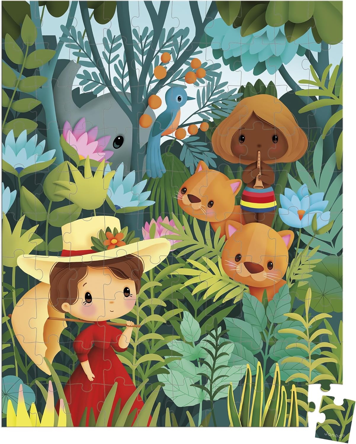 Janod - Quebra-cabeça 100 Peças Inspirado em Rousseau - Quebra-cabeça 100 Peças Infantil - Jogo Educativo - Desenvolve Paciência e Destreza - Certificado FSC - A partir de 6 anos, J02550