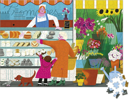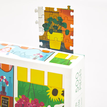 - NO MERCADO: A caminho do mercado de agricultores! Este quebra-cabeça de 500 peças o levará de volta à sua infância: o cheiro dos doces, as barracas coloridas, os pombos na praça... Siga a vovó e seus hábitos. Aproveite as pequenas coisas da vida e redescubra os prazeres do mercado!