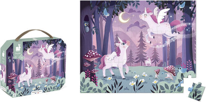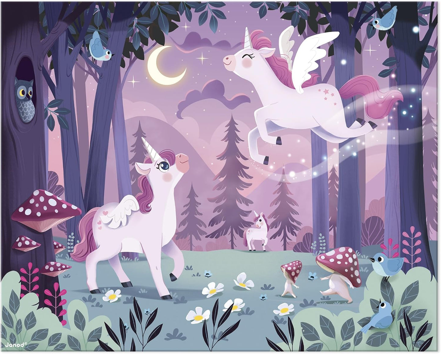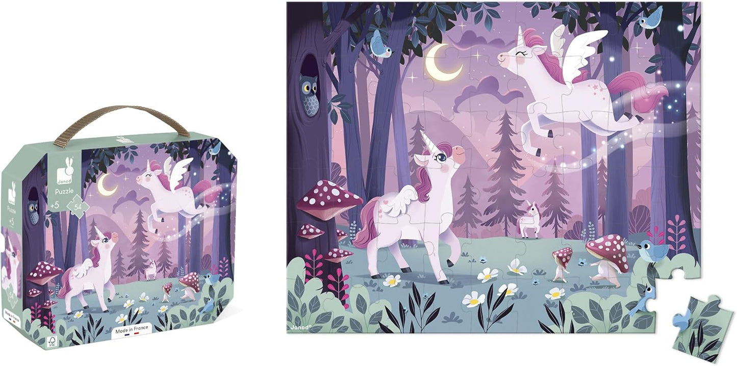 Janod - Quebra-cabeça de 54 peças - Tema Unicórnio - Jogo educativo para coordenação motora fina e concentração - Estojo com alça - Fabricado na França - Certificado FSC - Tintas vegetais - A partir de 5 anos, J02555