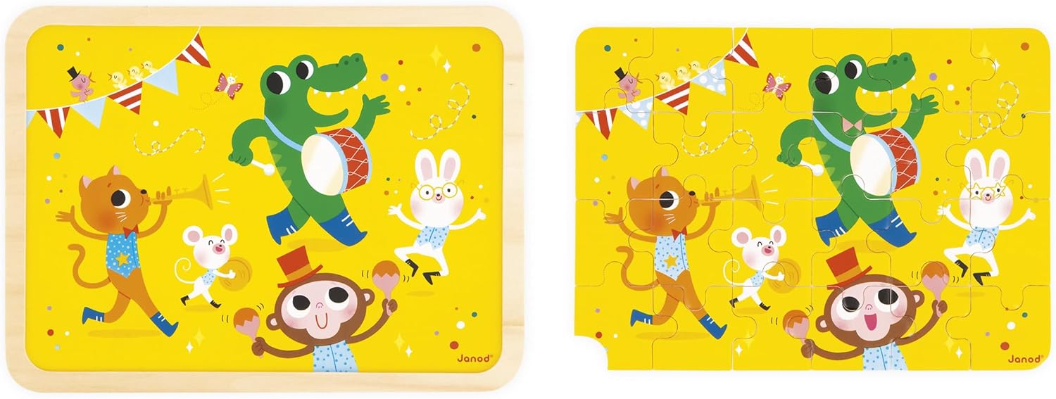 - BRINCADEIRA PRÁTICA: Para ajudar os pequenos, o modelo está impresso na bandeja. Os quebra-cabeças e as peças de madeira são fáceis de agarrar e manusear e têm o tamanho certo para as mãozinhas. Um brinquedo Janod ideal para trabalhar a coordenação motora fina.