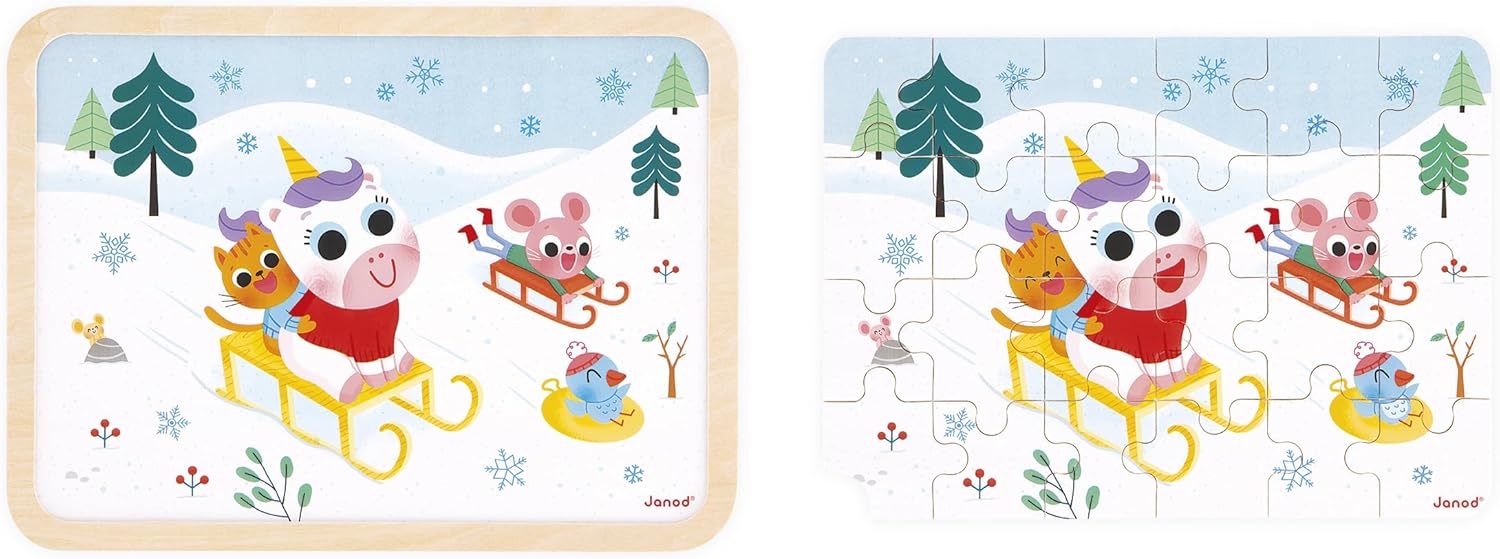 - CORRIDA DE TRENÓ: Pronto para uma corrida de trenó? Este quebra-cabeça de 24 peças ajuda crianças a partir de 3 anos a desenvolver a concentração e a coordenação motora fina. Peça por peça, elas criam um cenário de inverno onde o unicórnio brinca na neve. Você consegue encontrar as 5 diferenças ocultas? Com seu prático entalhe, este quebra-cabeça de madeira FSC é ideal para diversão e aprendizado em família!