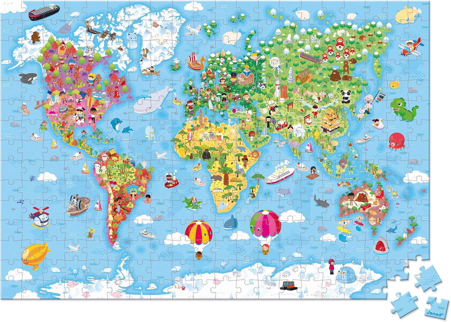 Janod - Quebra-cabeça infantil gigante mundial 300 peças - Cartão certificado FSC - Tinta vegetal - Fabricado na França - A partir de 7 anos,
