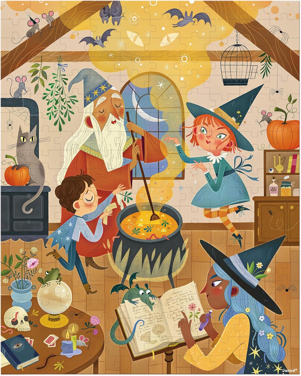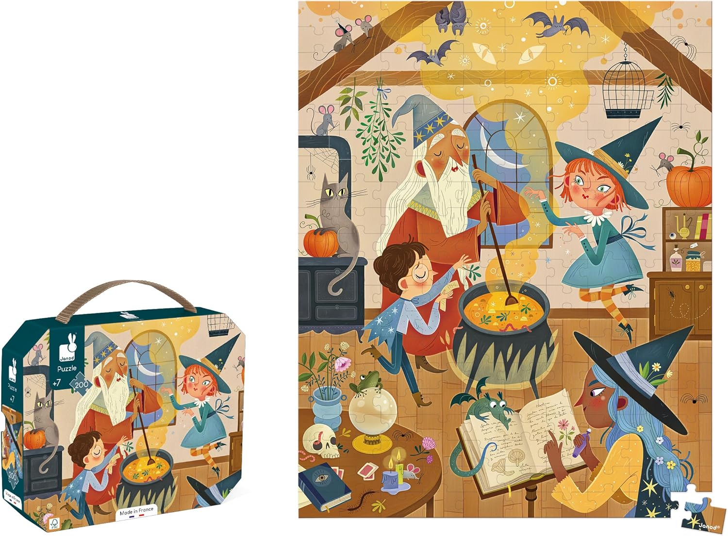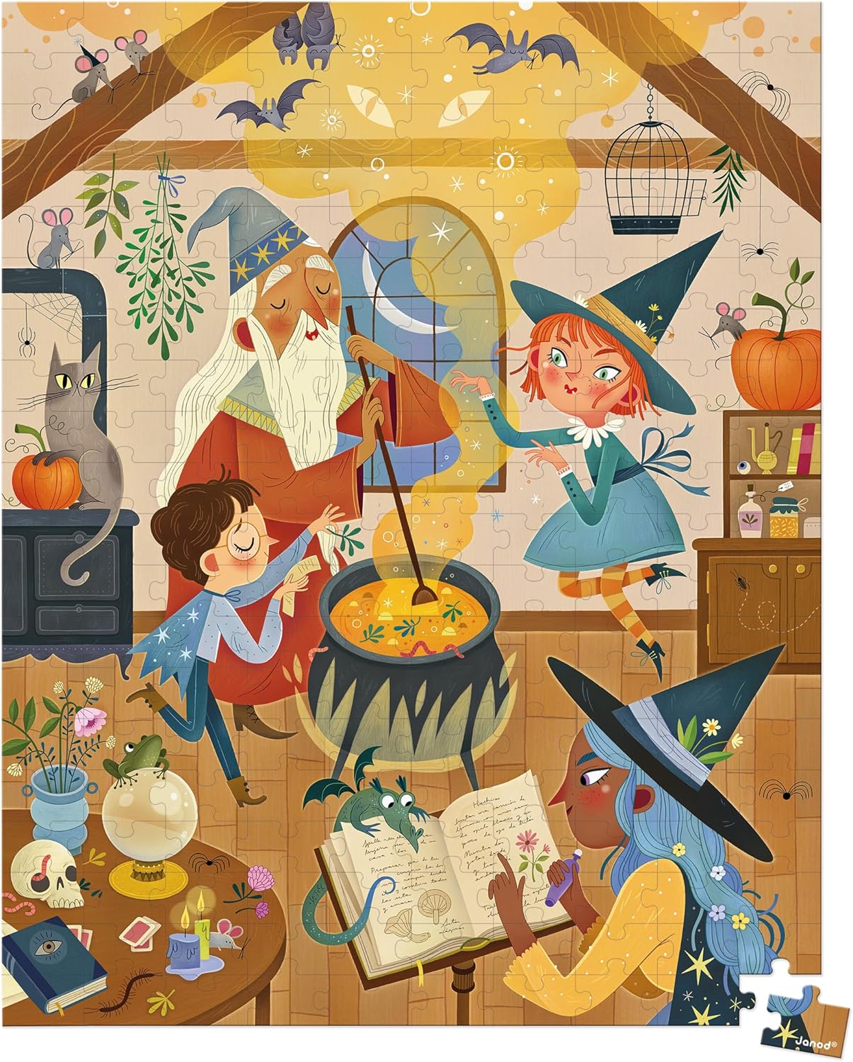 - UM UNIVERSO ENCANTADOR: As crianças vão se desenvolver brincando, graças a este quebra-cabeça educativo com lindas ilustrações: bruxos e bruxas preparam uma poção mágica em um caldeirão, ao lado de um sapo e morcegos.