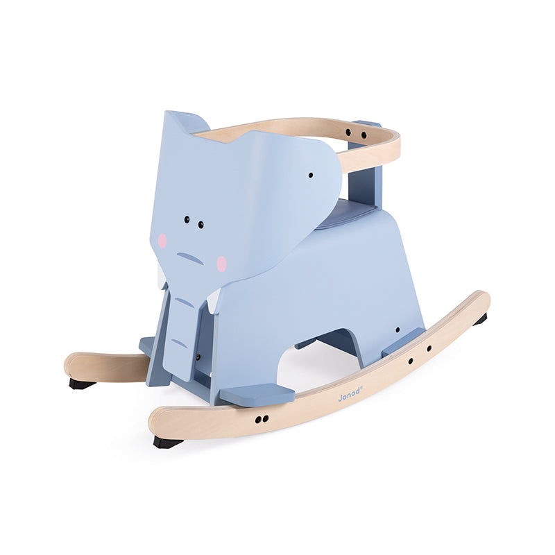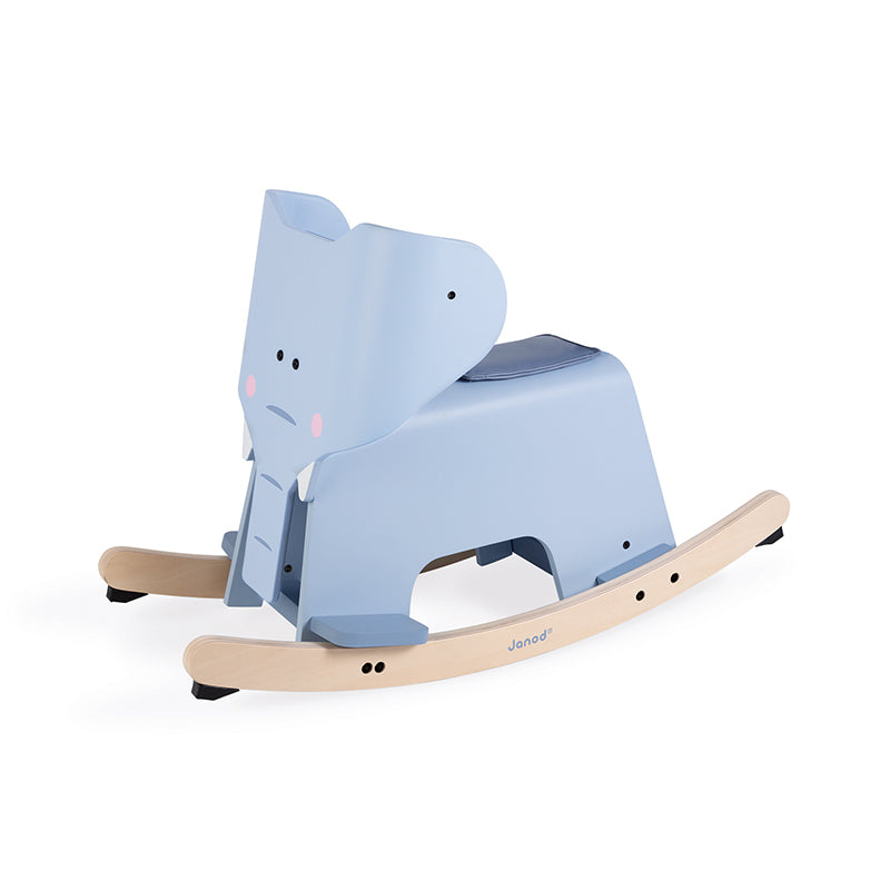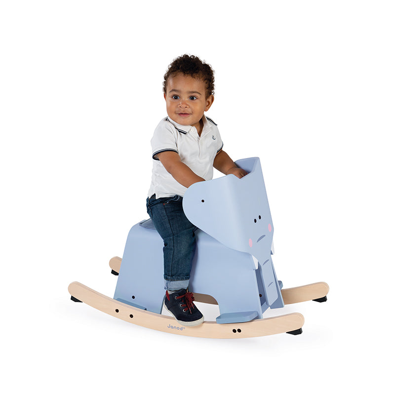 Este atraente brinquedo de balanço em forma de elefante de madeira é ideal para crianças pequenas.