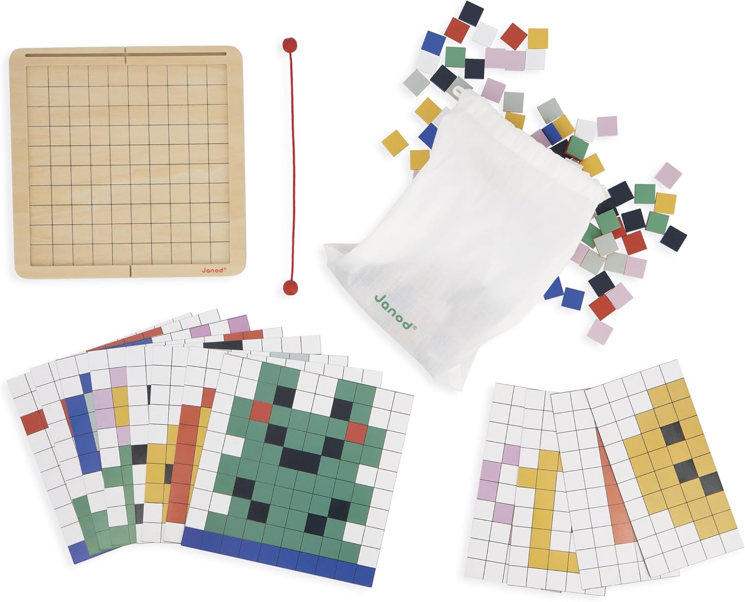 Janod - Simetria e Codificação - 4 Modos de Jogo - 12 Modelos para Reproduzir - Ideal para o Jardim de Infância e Preparação para a Primeira Seção - Brinquedo Educativo para Crianças - FSC de Madeira