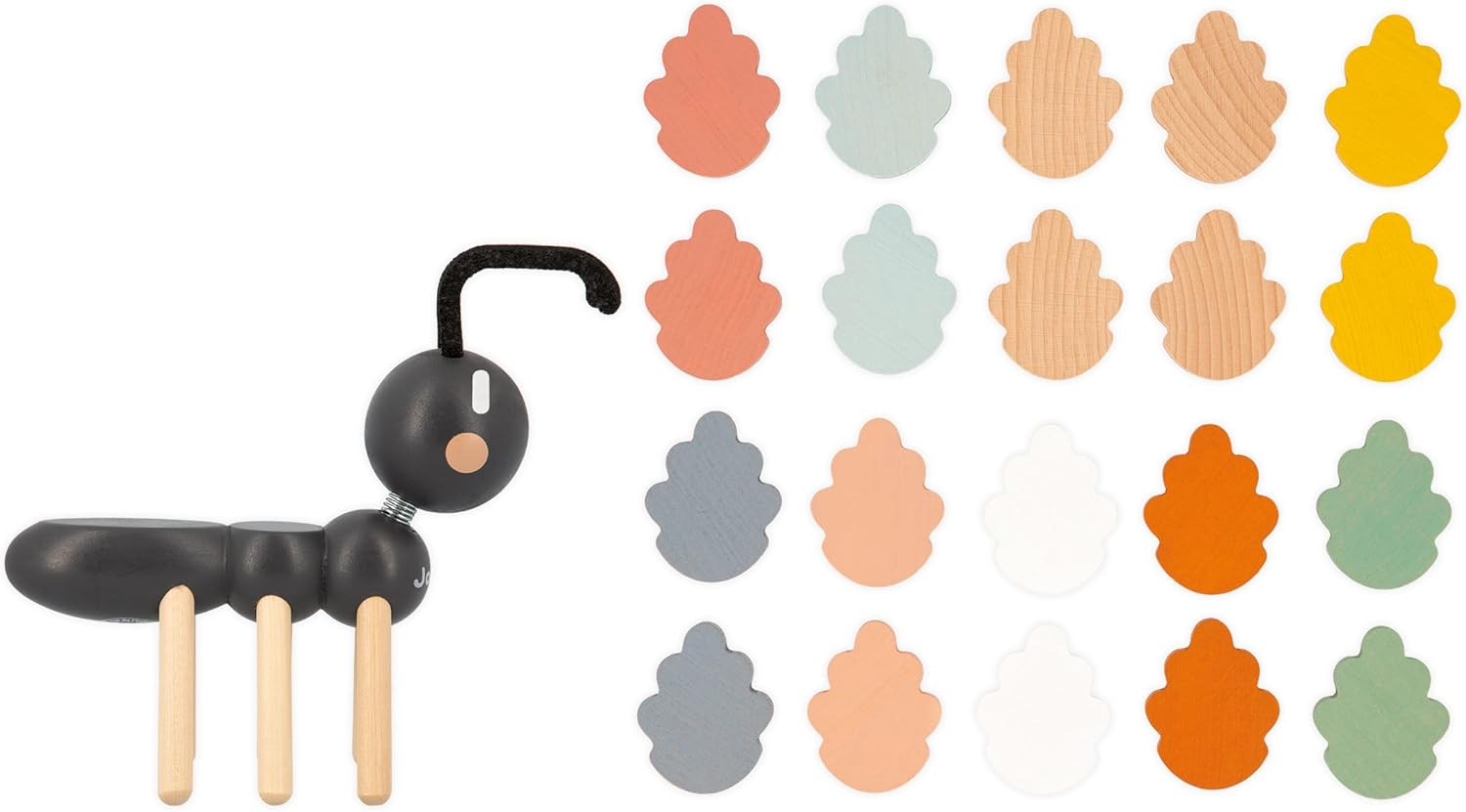 - JOGO DE APRENDIZAGEM ANTECIPADA PARA ANOS DE 2 ANOS: Este brinquedo Janod - para crianças de 2 a 5 anos - contém 1 grande formiga preta de madeira FSC e 20 folhas de cores diferentes. O jogo de empilhamento pode ser jogado sozinho ou com outras pessoas (amigos e familiares). Dimensões: 14,6 x 7 x 11 cm.