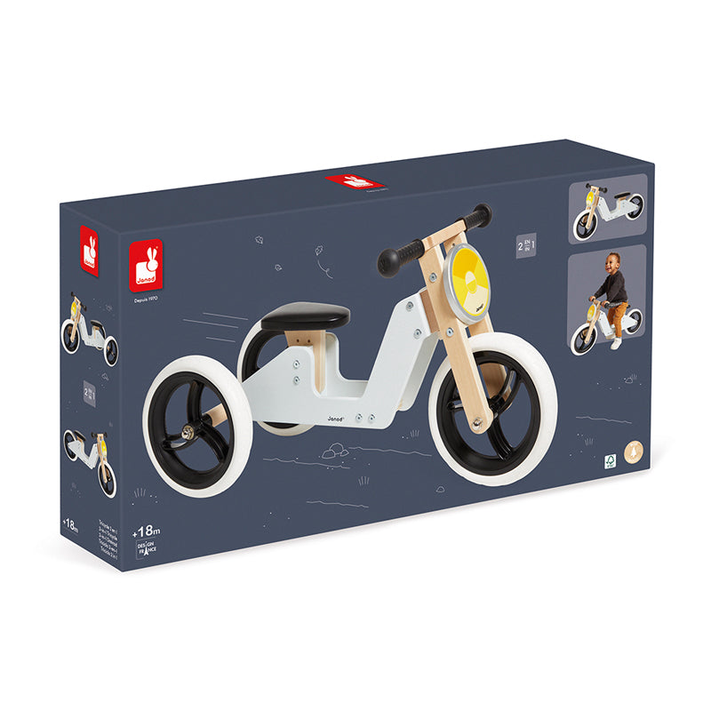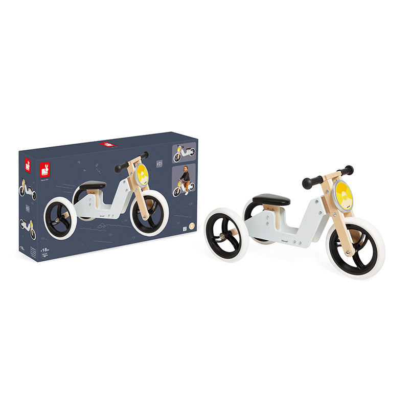 Lindo triciclo de madeira que se transforma em uma bicicleta de equilíbrio. Na versão triciclo seu filho desenvolverá suas habilidades motoras grossas e na versão bicicleta equilíbrio, ele aprenderá a se equilibrar. Seu filho também apreciará seu assento macio, ajustável em altura (28 cm a 34 cm) (11 pol. a 13,4 pol.) e suas alças de silicone, macias para mãos pequenas.