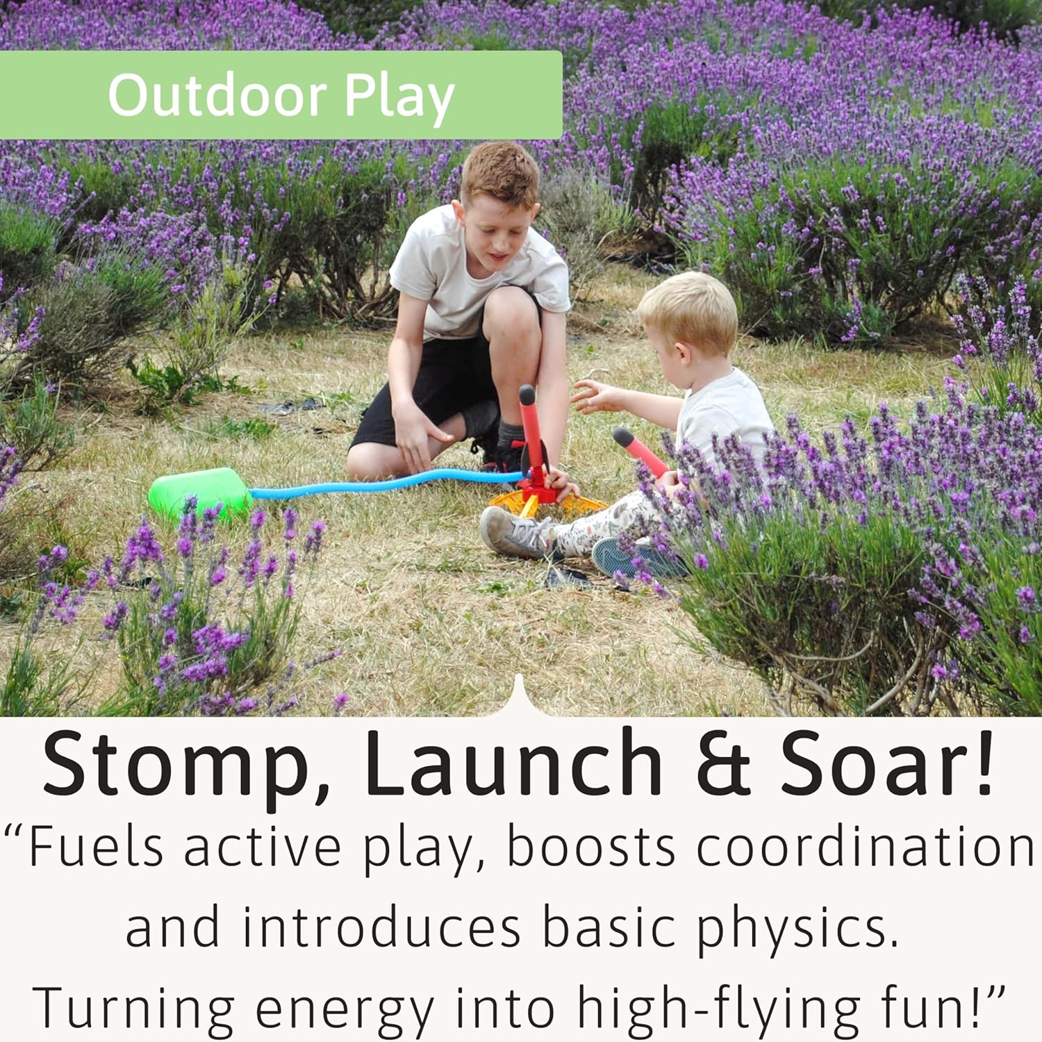 - Lançador de foguetes | Abra uma área para sua plataforma de lançamento, prepare seu foguete e prepare-se para a decolagem! Alimentados pelo exercício: nossos foguetes voadores são uma maneira fantástica para as crianças se manterem ativas e liberarem energia extra.