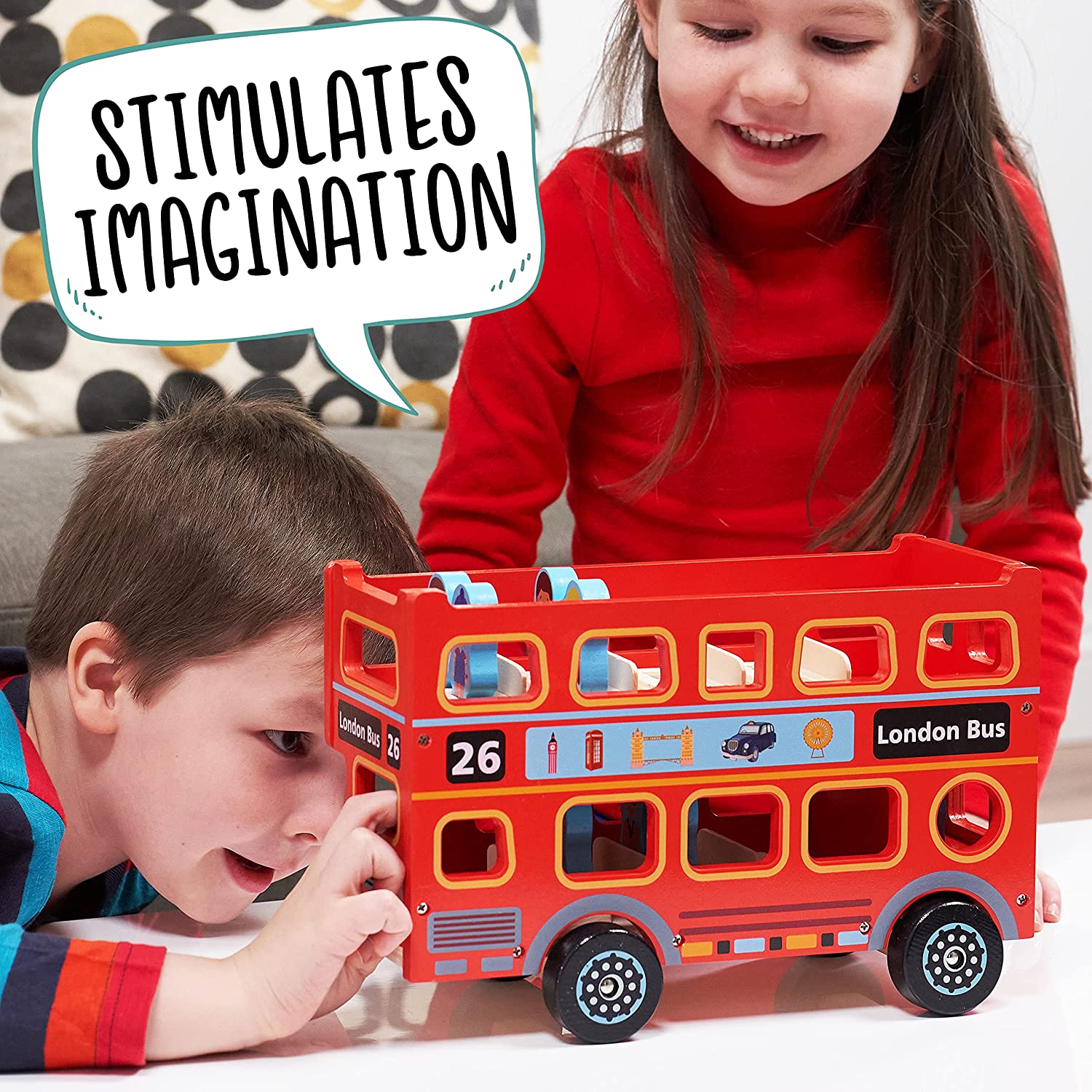 Brinquedos para meninos e meninas de 3 anos de idade | Nossos lindos brinquedos para carros London bus toy para crianças são perfeitos para ensinar as crianças sobre o transporte britânico com um design realista e bancos superiores removíveis para obter o deck abaixo. Brinquedos de madeira perfeitos para meninos e meninas de 3 anos.