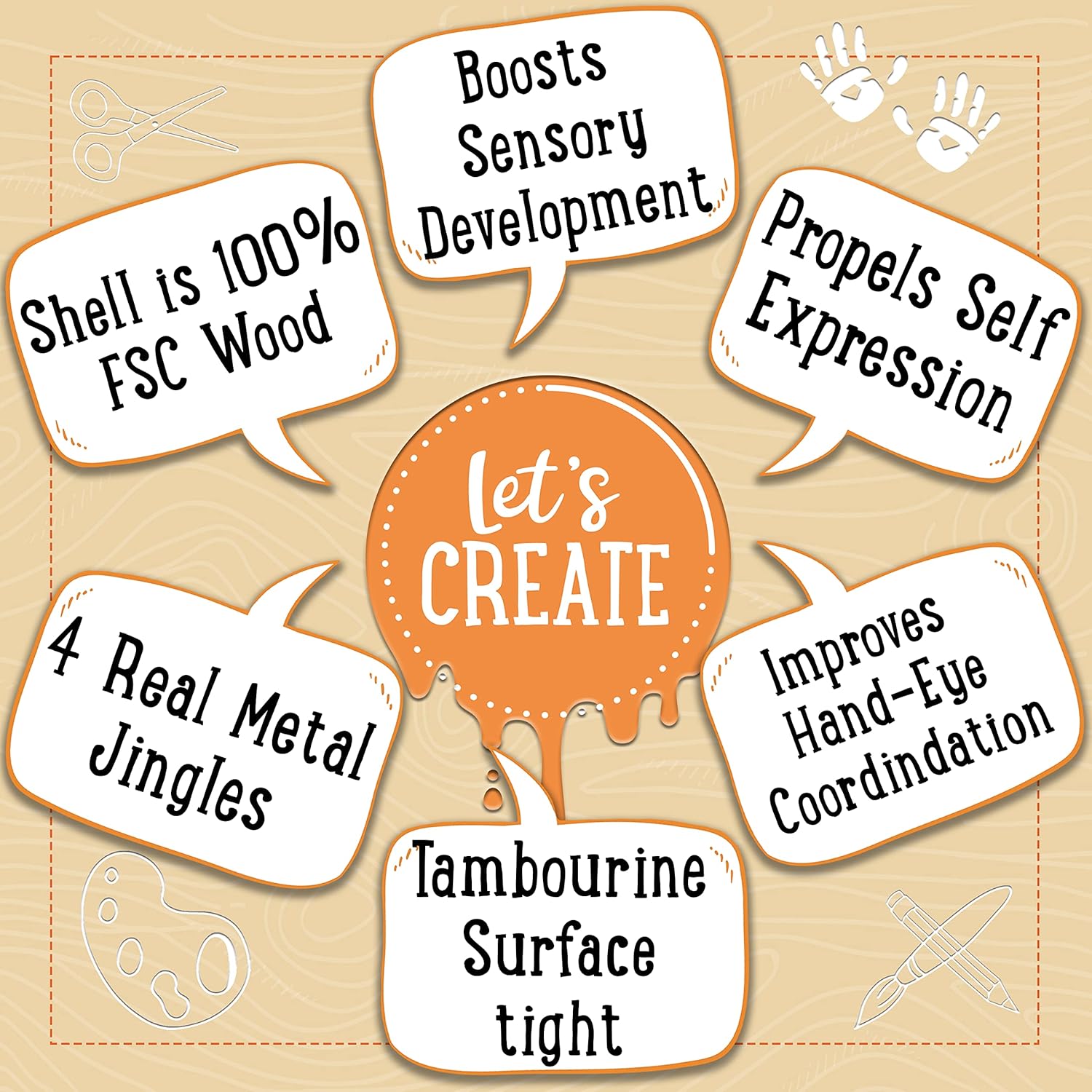- PARA MÃOS PEQUENAS | O pandeiro de madeira Jaques é leve e fácil de segurar, e foi criado pensando nas mãozinhas.