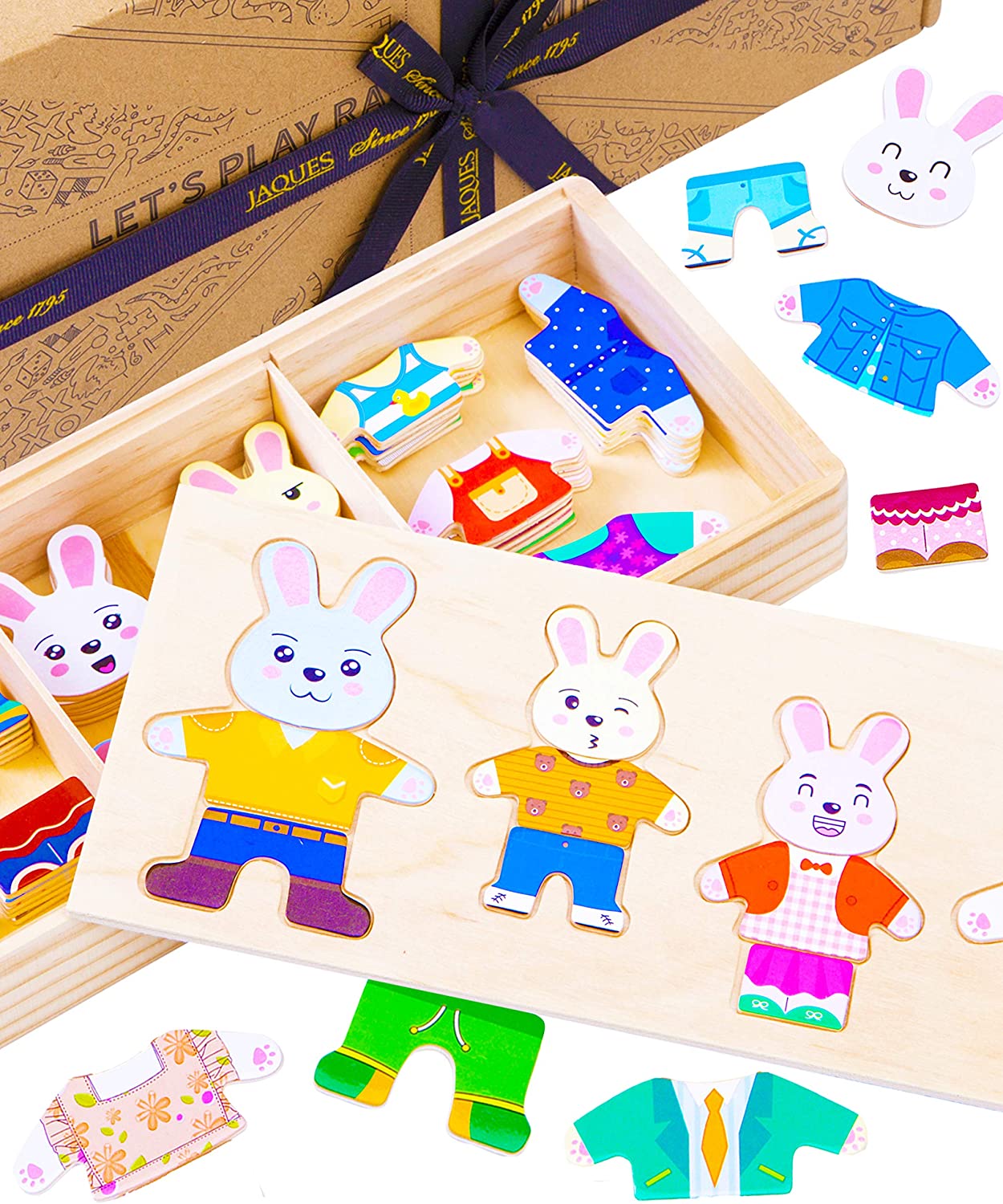 Jaques of London - Quebra-cabeça de madeira para a família do coelho vestir