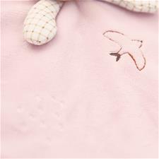 O corpo macio e fofo deste cobertor em microveludo rosa encantará o bebê, que não para de aconchegá-lo! O rostinho do coelho e a andorinha bordada, como se repousassem sobre seu coração e pequenos pontos, são muito agradáveis ao toque, conferindo-lhe um estilo verdadeiramente atemporal.