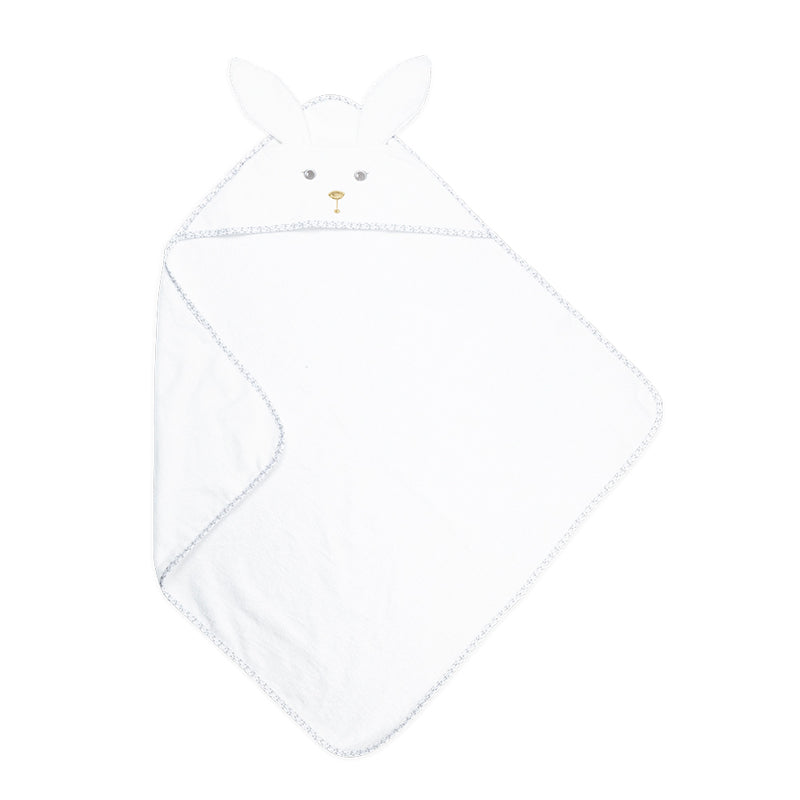Esta toalha com capuz 100% algodão com orelhas de coelho fará com que seu pequeno fique tão fofo depois do banho.