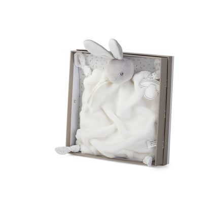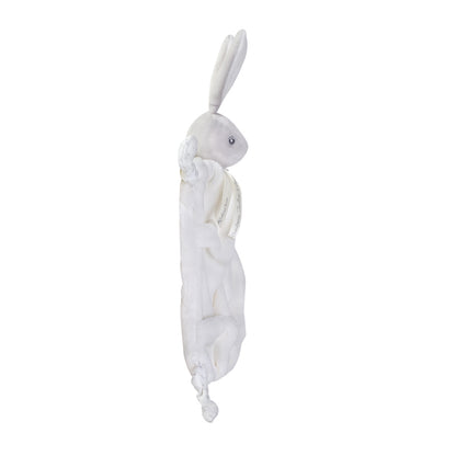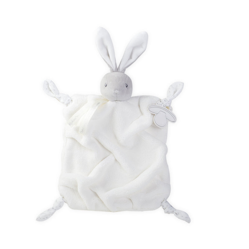 Este doudou de coelho de 20cm é muito macio ao toque e fácil de agarrar com as pequenas mãos. Nos nós do doudou está uma nova e elegante estampa Plume allover, que também pode ser usada para prender uma chupeta para que esteja sempre perto do bebê.