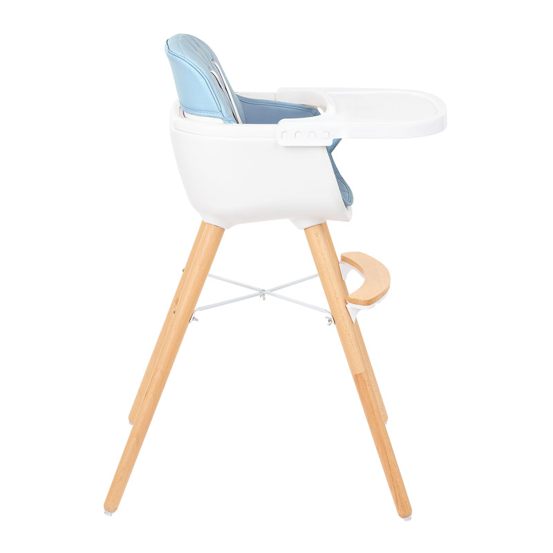 Uma cadeira alta extremamente elegante e confortável, possui uma bandeja ajustável de 3 posições, capa de couro sintético de luxo no assento e apoio para os pés de madeira para maior conforto.