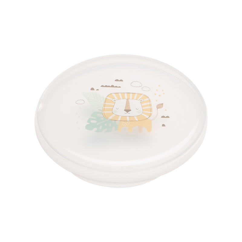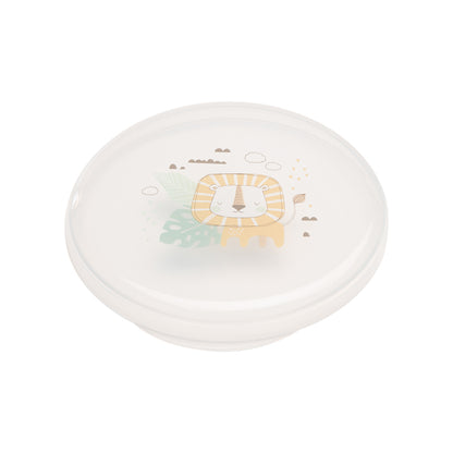 Vem com uma linda tampa impressa com o tema Savanna, que mantém o conteúdo fresco, seguro e facilmente transportado.