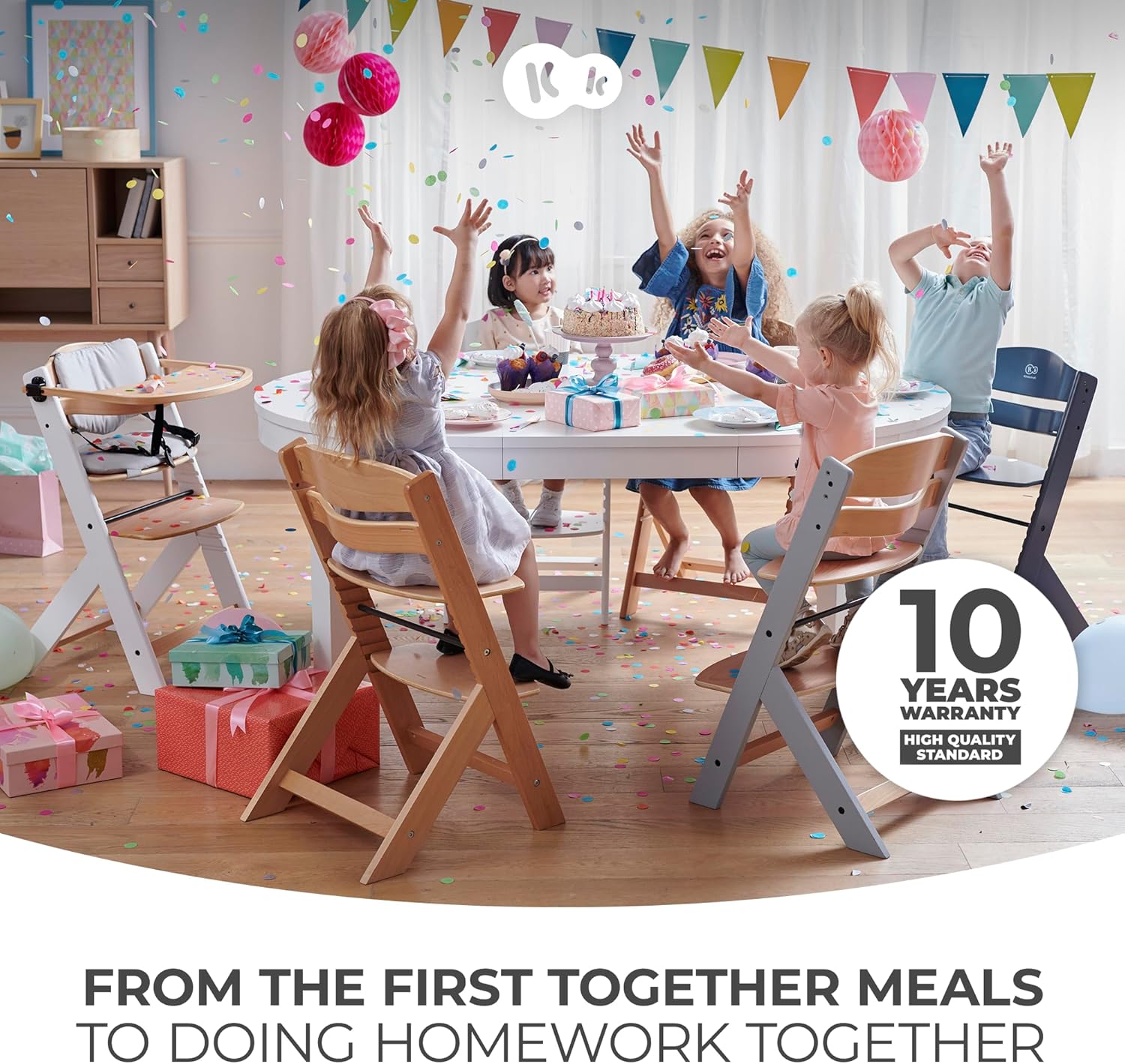 Kinderkraft Cadeira alta de madeira 3 em 1 NECK, cadeira multifuncional para bebé, altura e apoio para os pés ajustáveis, cinto de segurança, com bandeja removível, para crianças até 10 anos, madeira branca