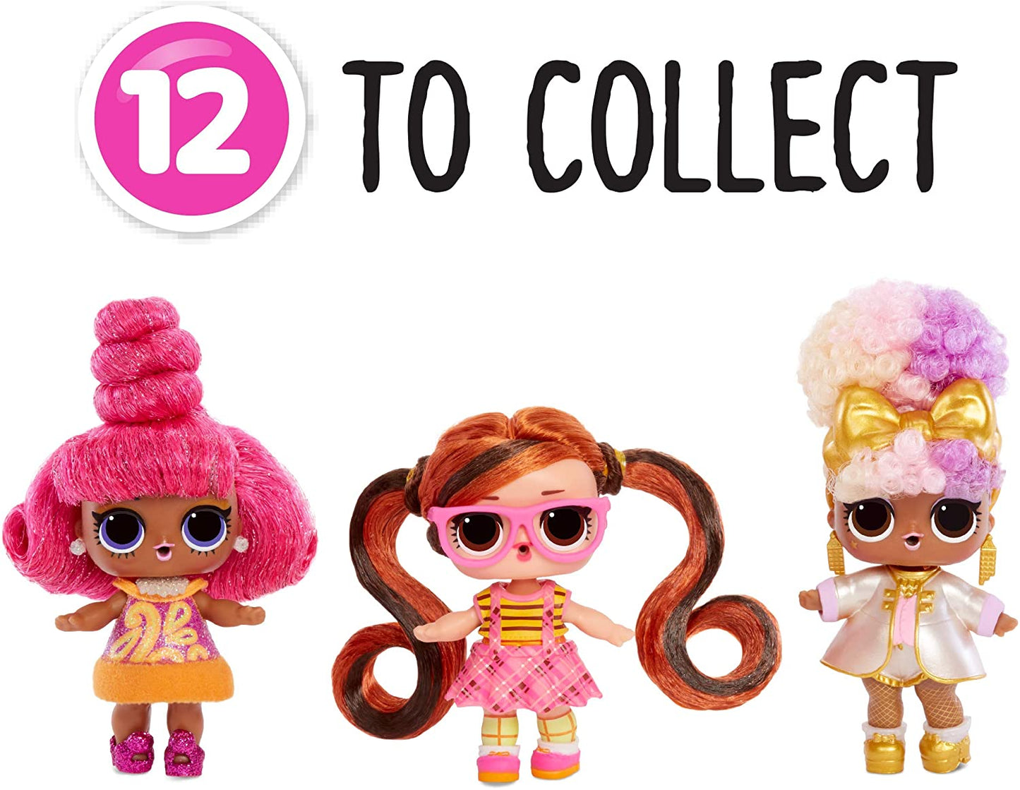Unbox 15 surpresas, incluindo misturar e combinar cabelos Cada boneca inclui misturar e combinar peças de peruca para projetar tantos penteados ferozes e personalizados e uma nova experiência de unboxing em um L.O.L gigante. Bola surpresa.