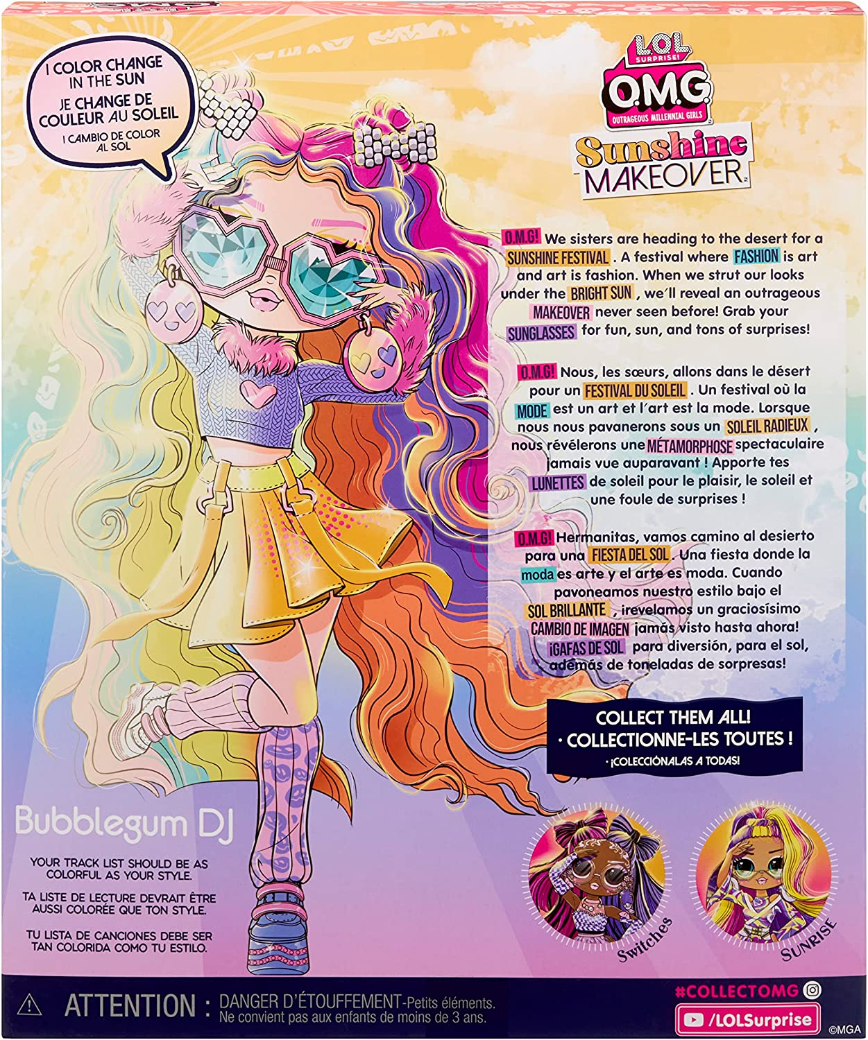 L.O.L. Surprise! Boneca da moda OMG Sunshine Makeover - BUBBLEGUM DJ - Inclui mudança de cor UV ao sol, várias surpresas e acessórios fabulosos - Ótimo presente para crianças de 4 anos ou mais
