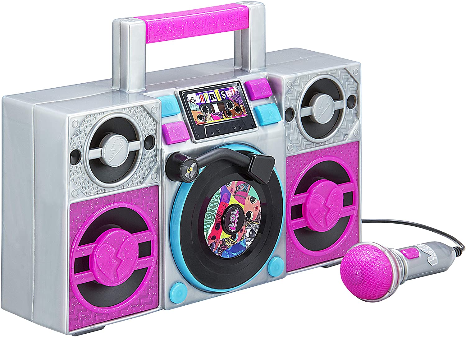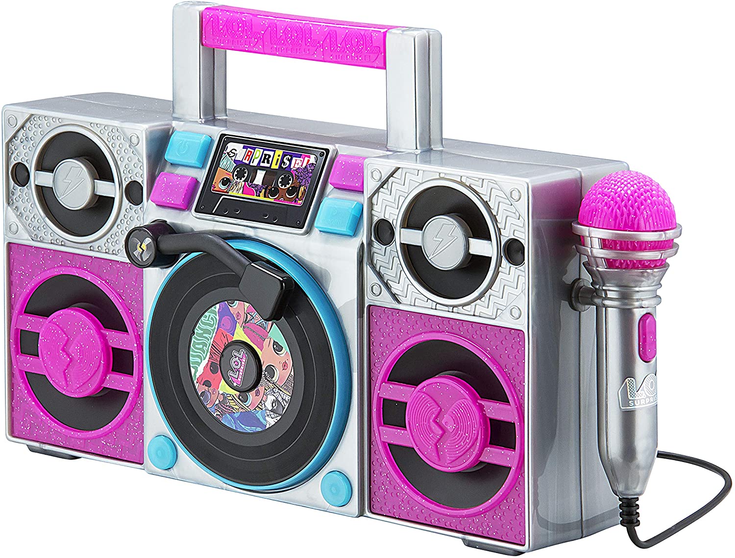 DESIGN PORTÁTIL E LEVE: Leve sua Boombox Sing Along quando e onde você for. O design em forma de bolsa com uma alça flexível facilita o transporte. Divertida e leve, a festa nunca para.
