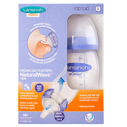 A mamadeira Lansinoh com bico NaturalWave foi especialmente concebida para que o seu filho possa desfrutar do seu leite materno extraído, mesmo quando estão separados. Com base em mais de 50 anos de pesquisa, o bico NaturalWave promove a ação de sucção instintiva do seu bebê para o desenvolvimento oral natural, o que ajuda você a alternar facilmente entre o seio e a mamadeira para que você possa manter seus padrões de amamentação estabelecidos. Com uma base ampla, o bico NaturalWave™ permite uma pega mais ampla, semelhante à pega natural do bebê. Supermacio e flexível para uma compressão ideal, o bico de silicone permite que o bebê controle o fluxo do leite. O bico NaturalWave™ tem um design de inclinação gradual para melhorar a sucção, enquanto sua estrutura é reforçada com sulcos verticais internos inovadores para torná-lo resistente ao colapso para que o bebê possa desfrutar de uma alimentação confortável. Para sua tranquilidade, seu Sistema de Ventilação de Ar reduz a entrada de ar, uma causa potencial de cólicas. O formato ergonômico da mamadeira torna-a fácil e confortável para a mãe e o bebê segurá-la, enquanto o design de gargalo largo significa que é fácil de encher e limpar.